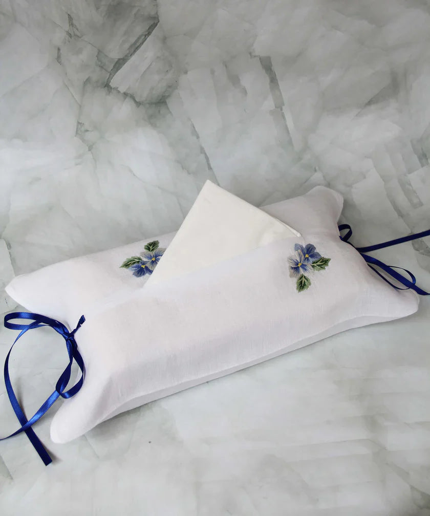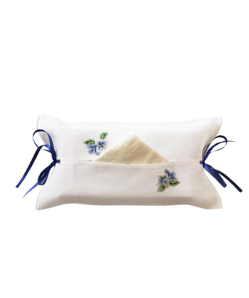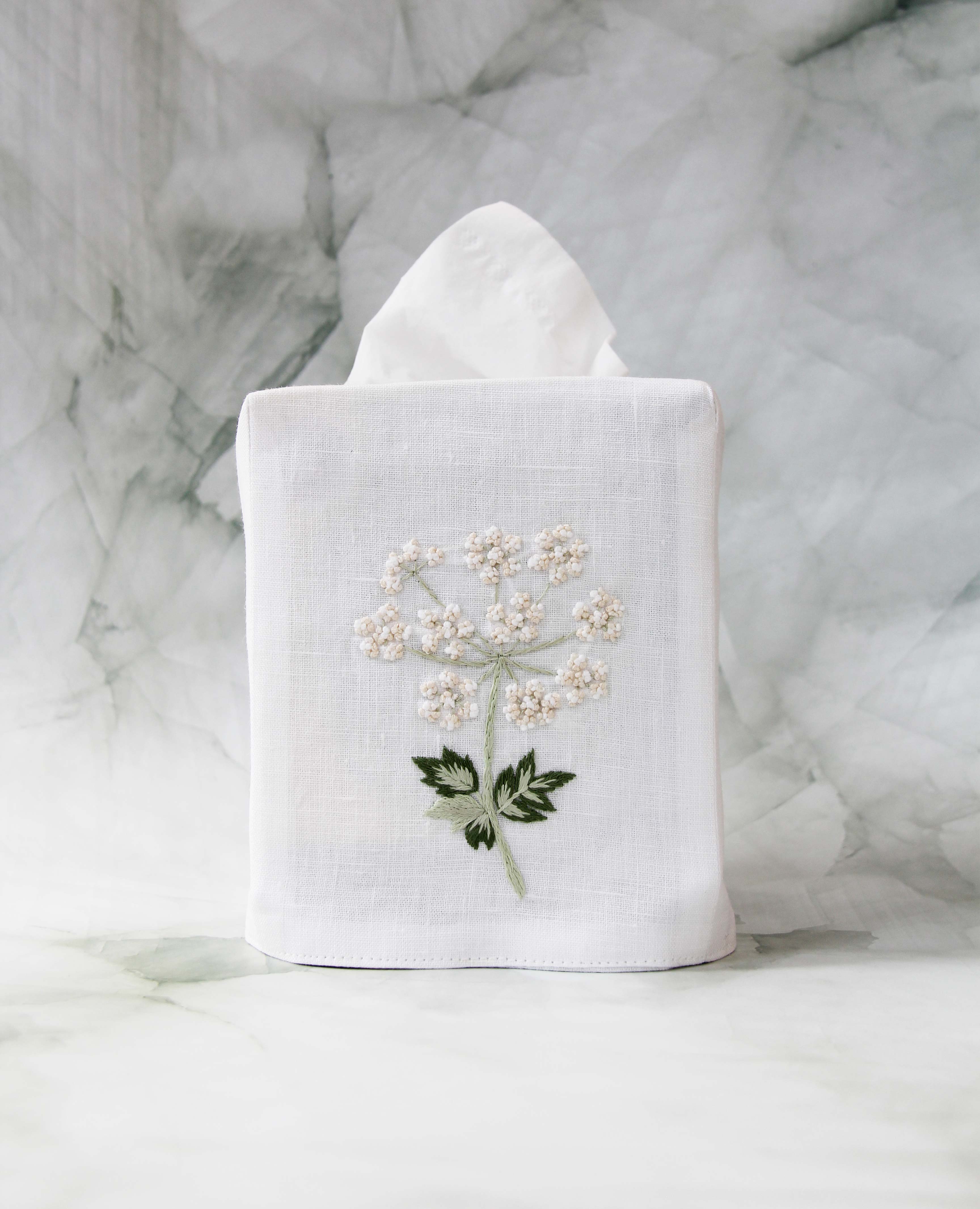 Housse de boîte de mouchoirs carrée brodée lin Angélique