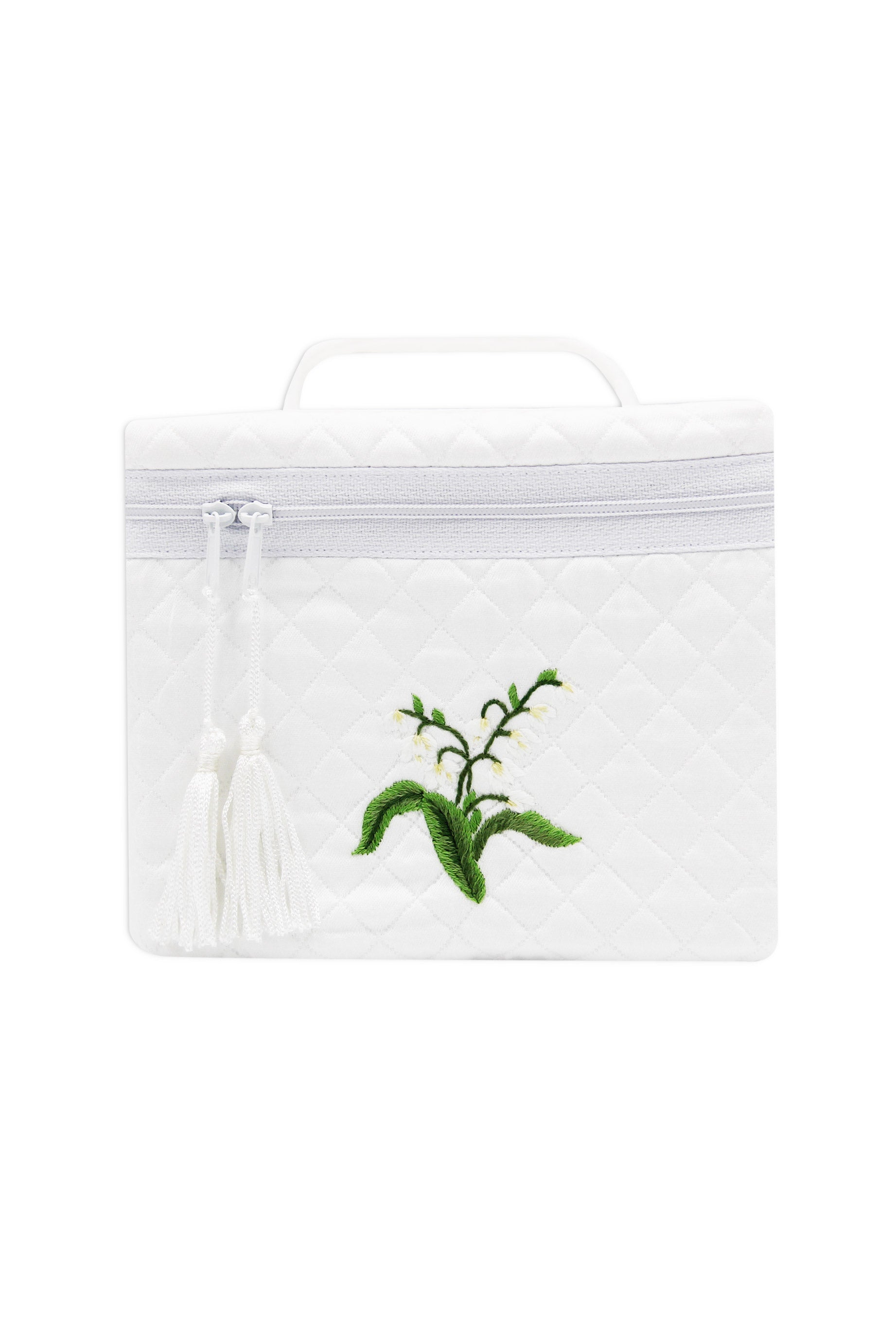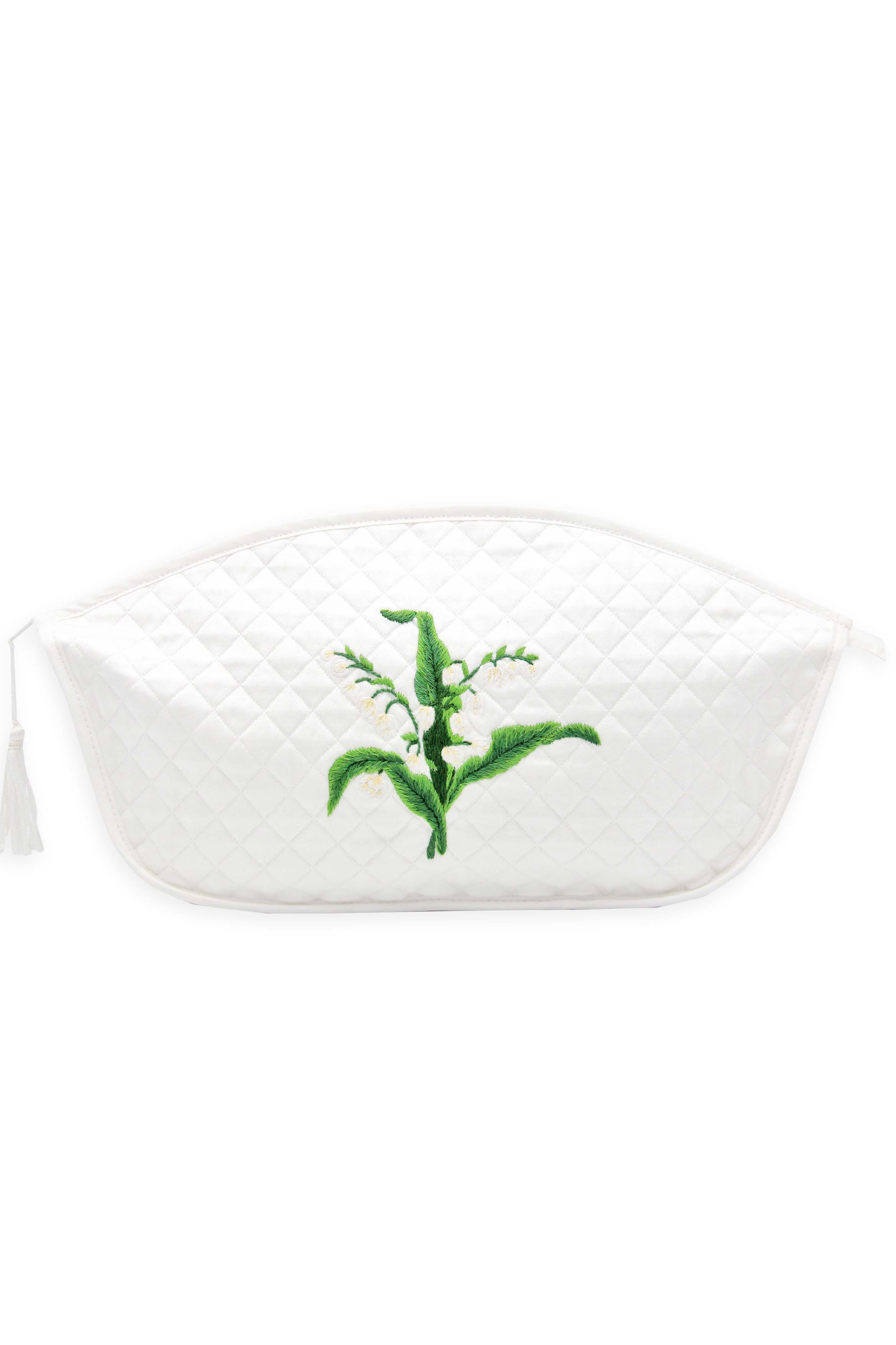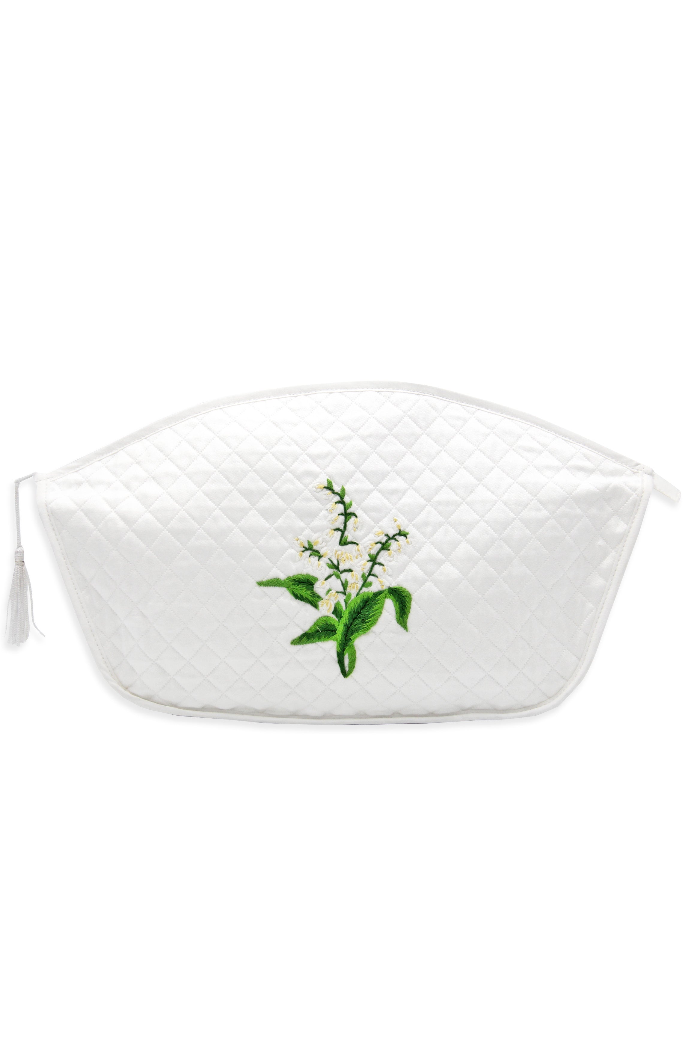 Trousse de toilette brodée satin de coton Hortensia blanc