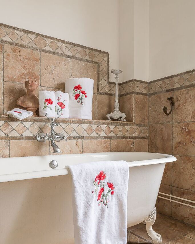 Chez Valombreuse, le linge de bain se pense comme une extension de l’élégance intime. Chaque pièce, qu’il s’agisse d’un drap de bain généreux, d’une serviette de toilette brodée ou d’un tapis de bain raffiné, est conçue pour offrir une expérience de confort absolu.