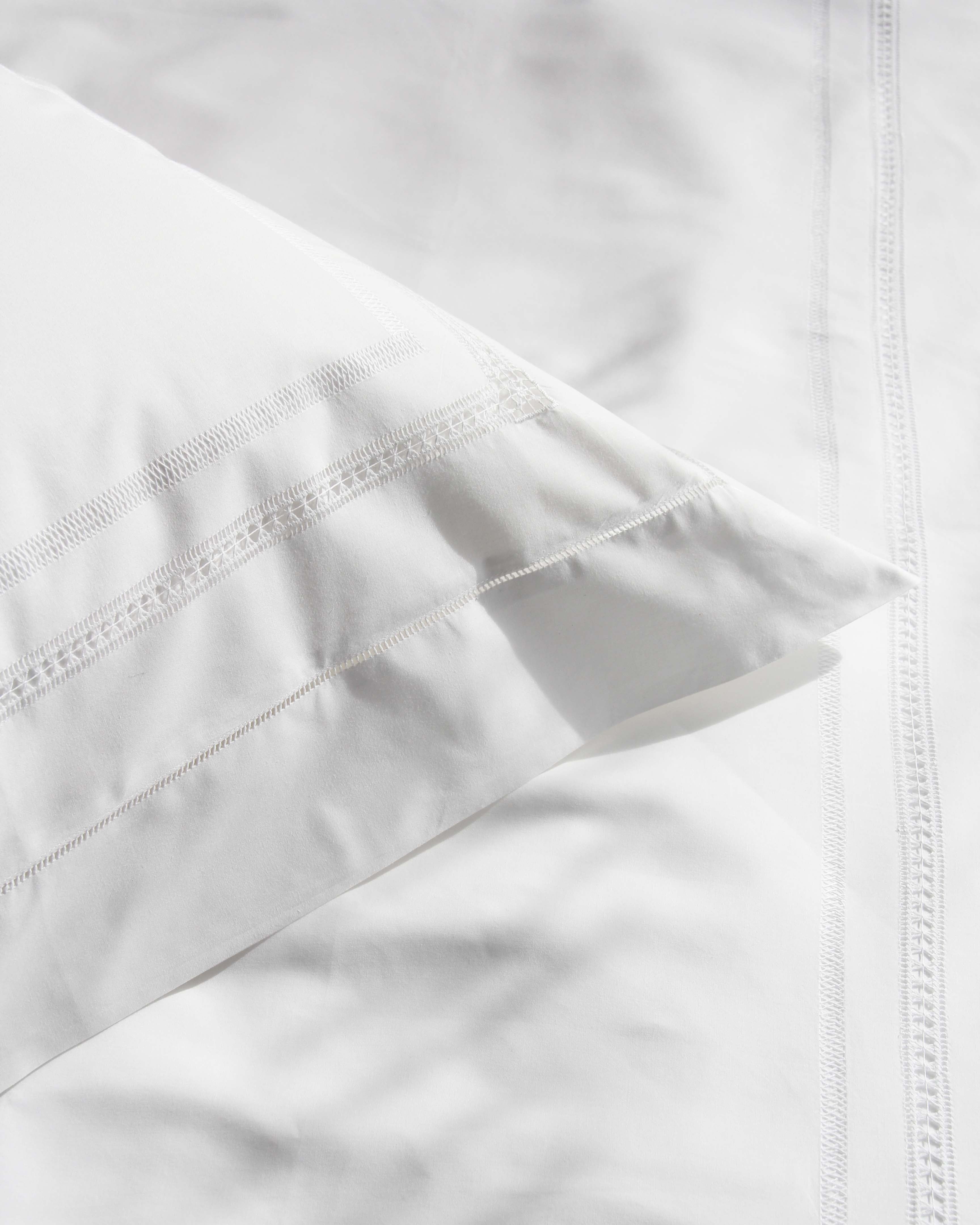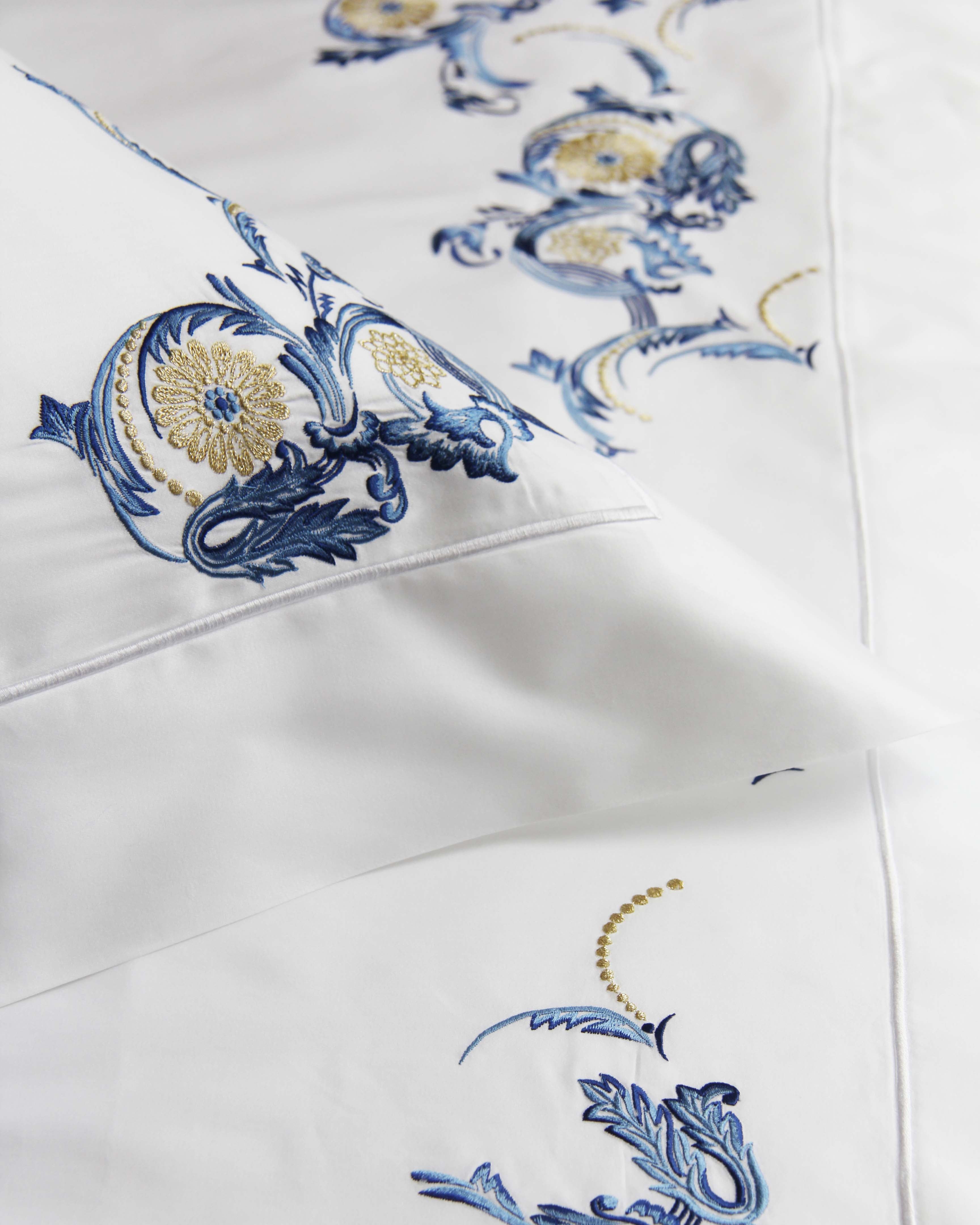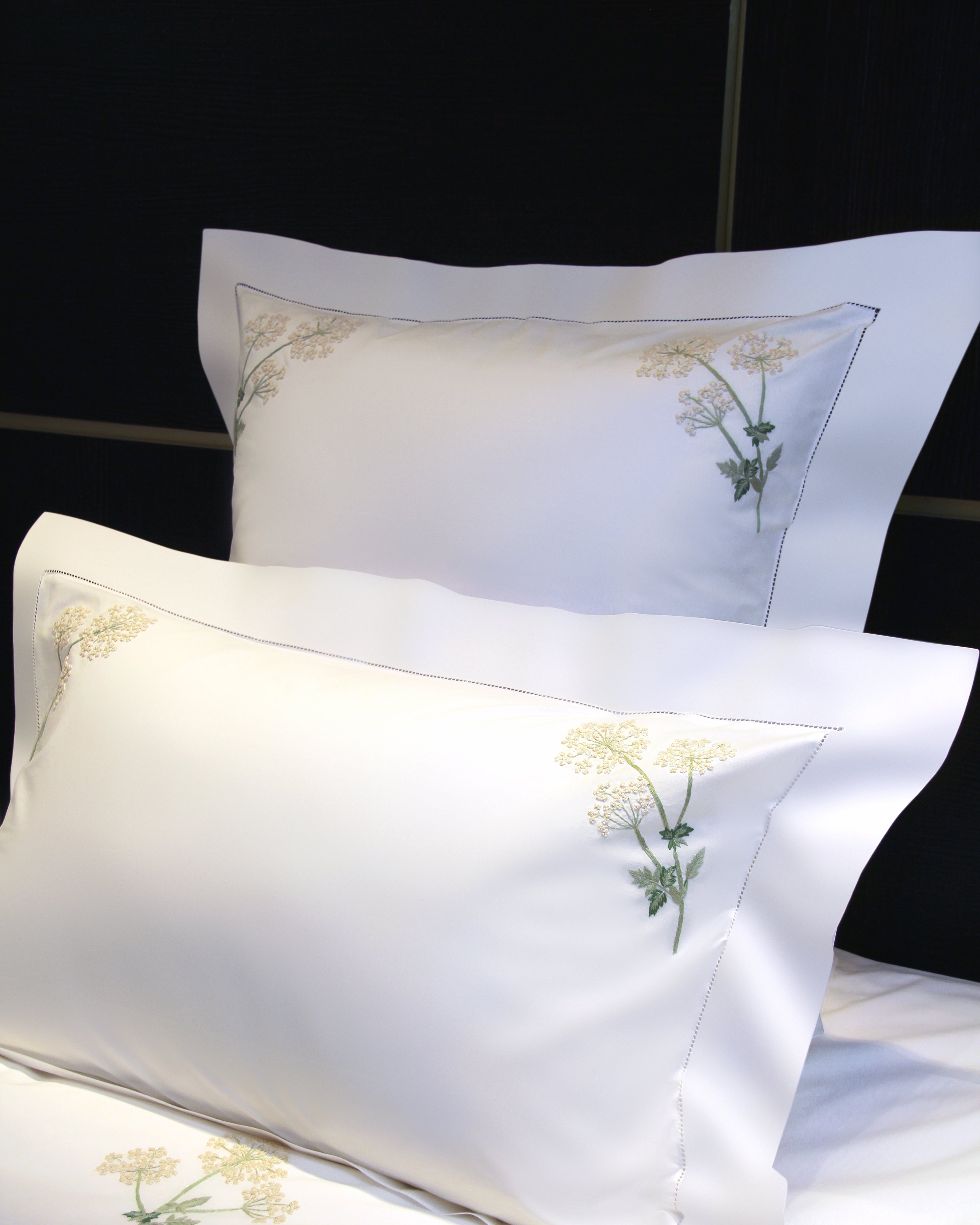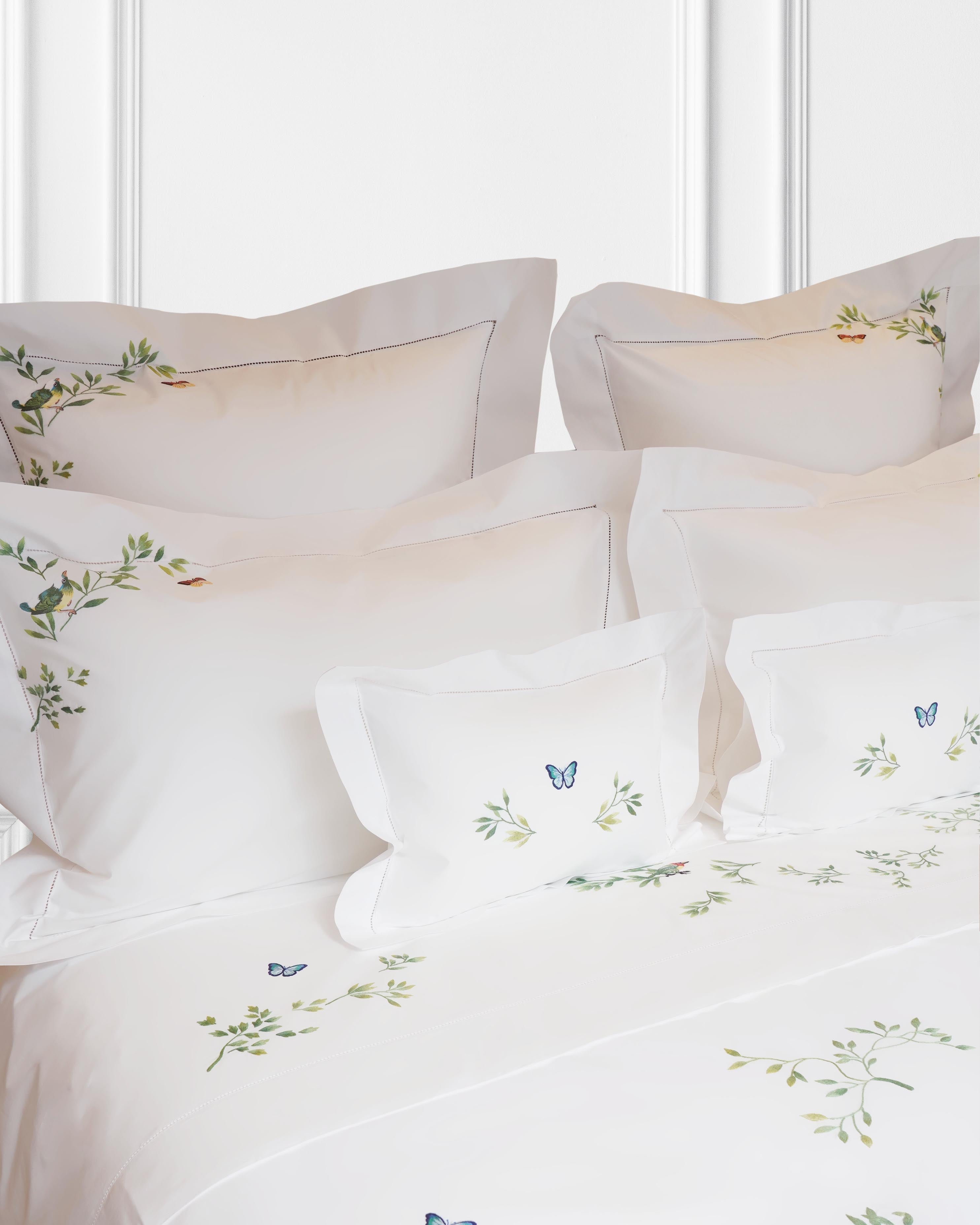 Nos collections de linge de lit haut de gamme rassemblent des parures de lit, des housses de couette, des draps brodés, des taies d’oreiller ou encore des draps housse, imaginés pour créer un ensemble harmonieux. Chaque broderie, chaque finition témoigne d’un savoir-faire transmis avec rigueur, au service d’un luxe discret et durable.