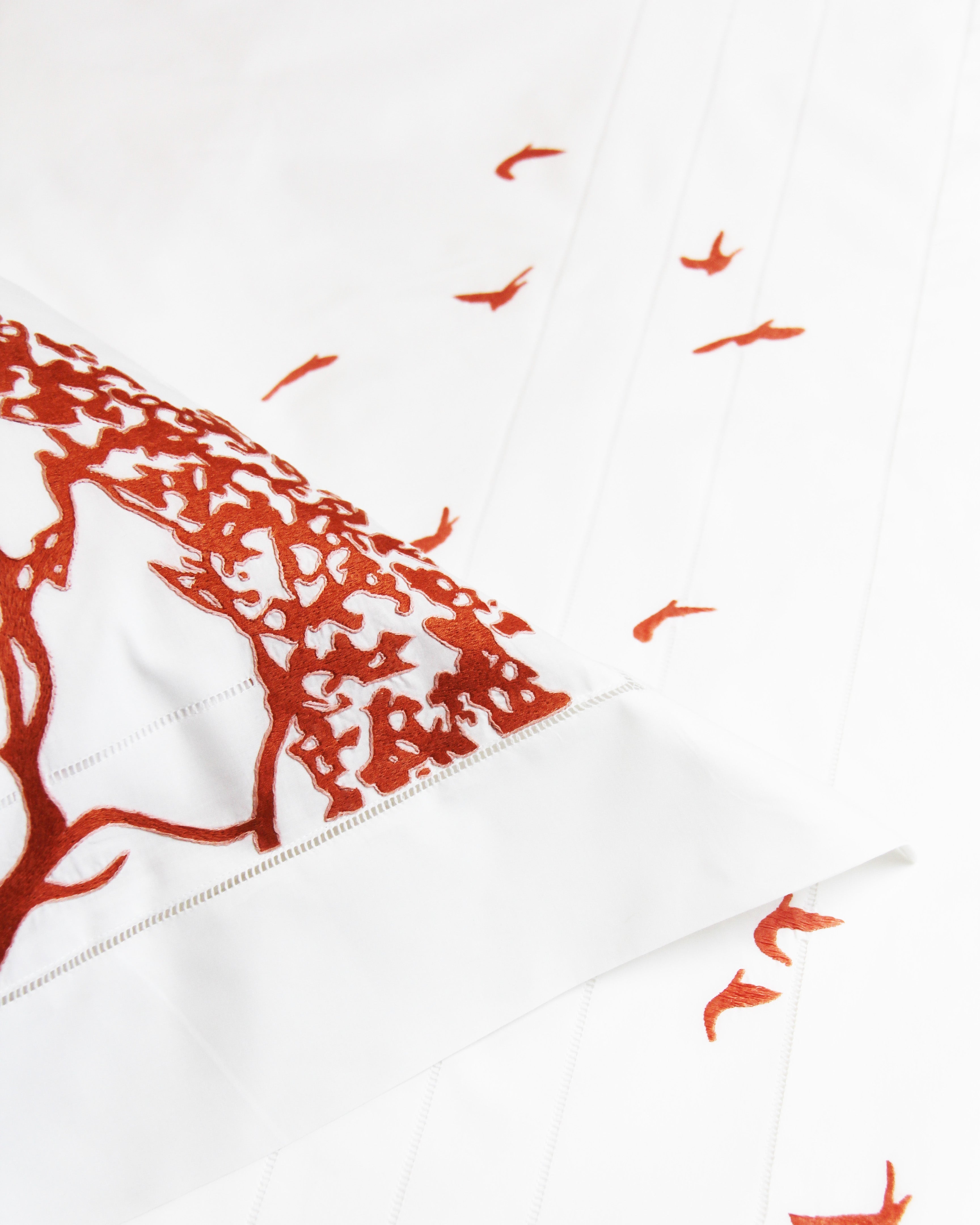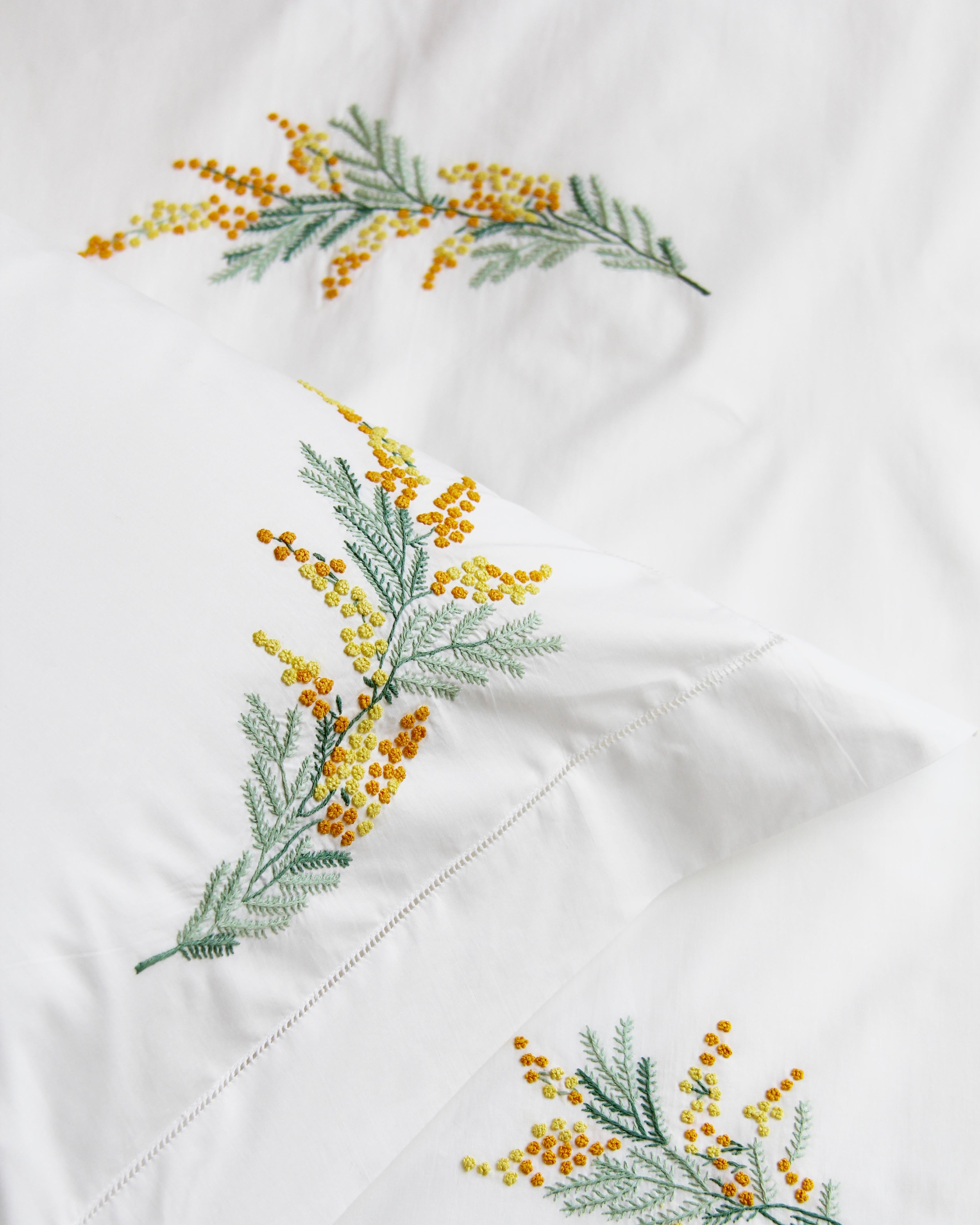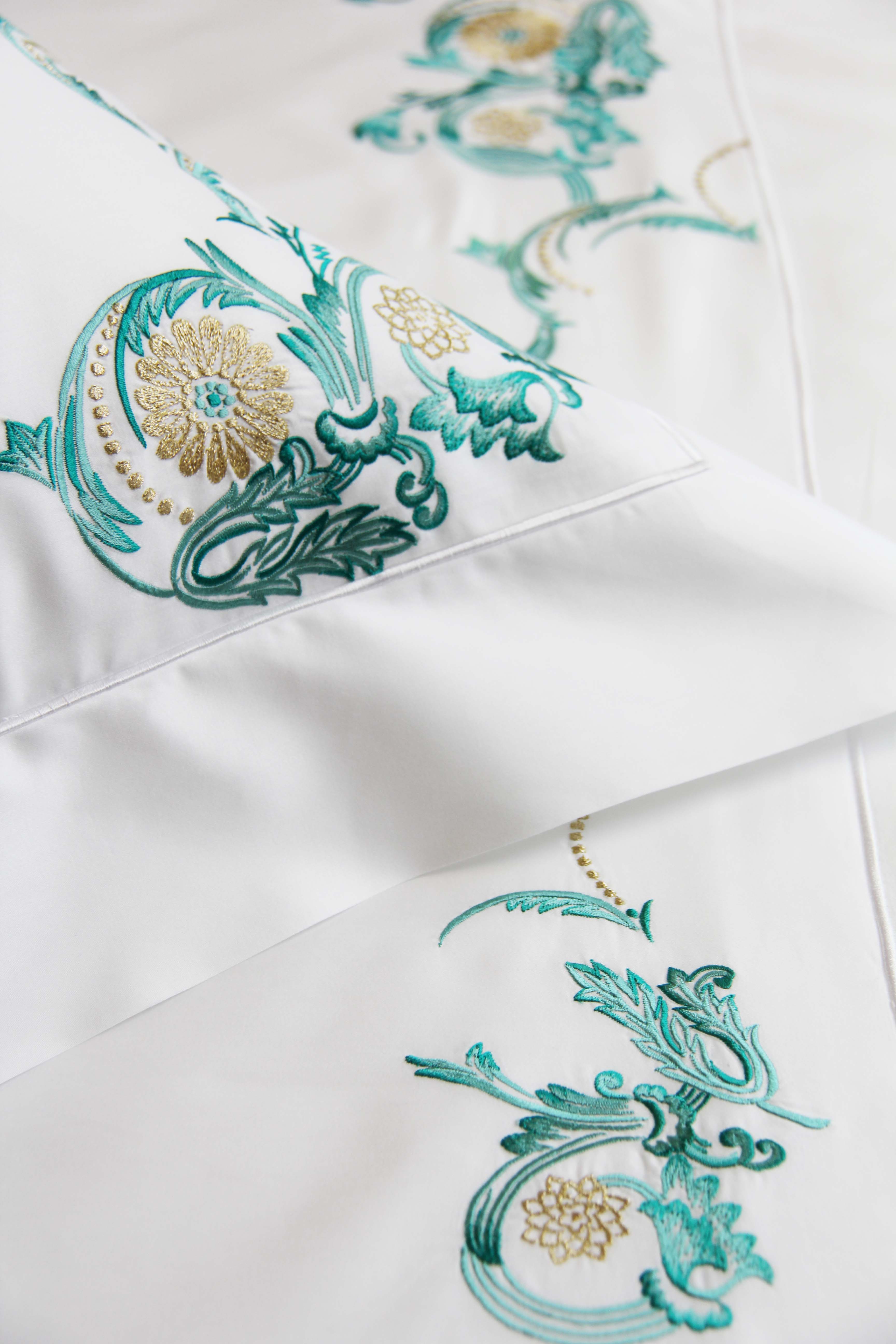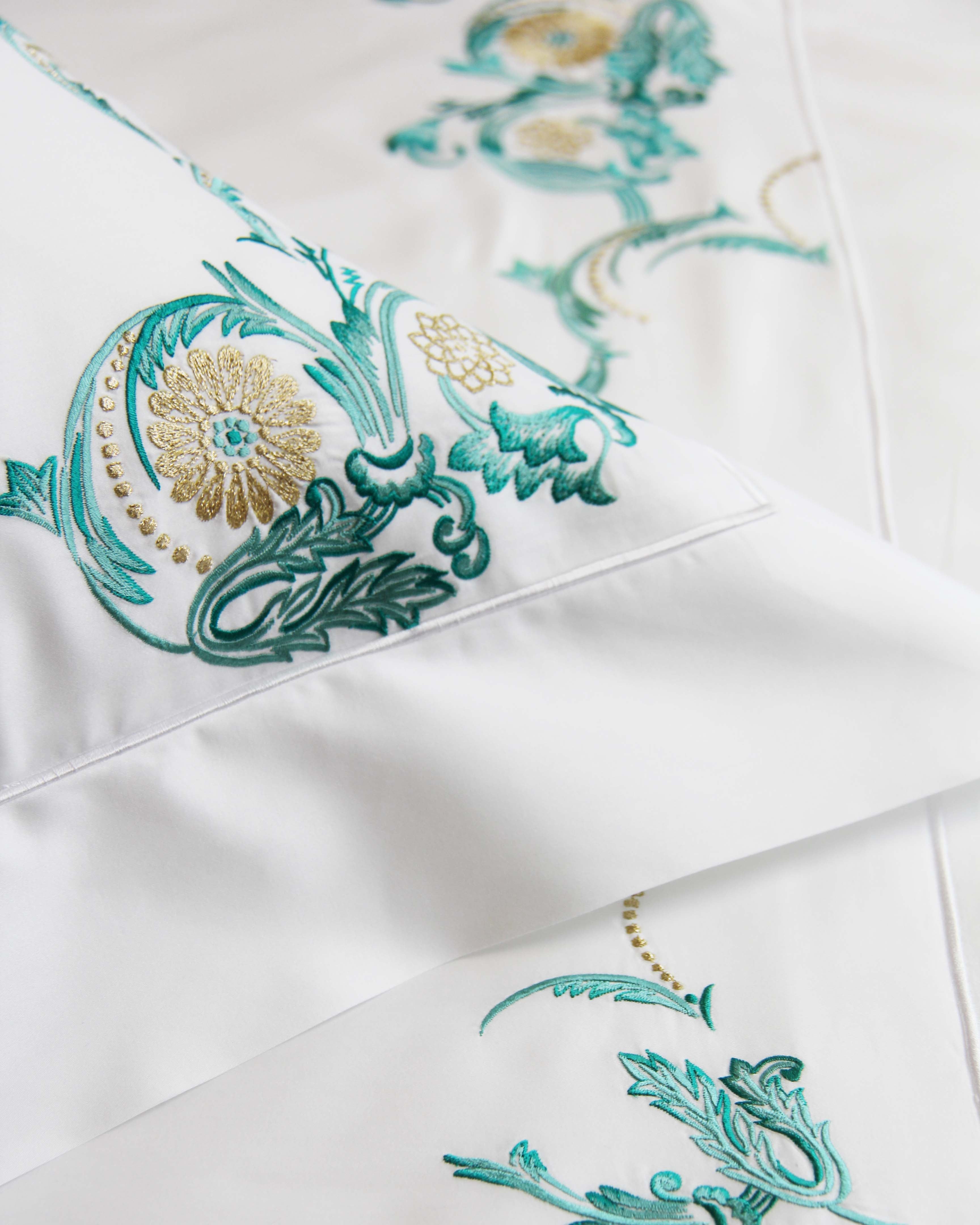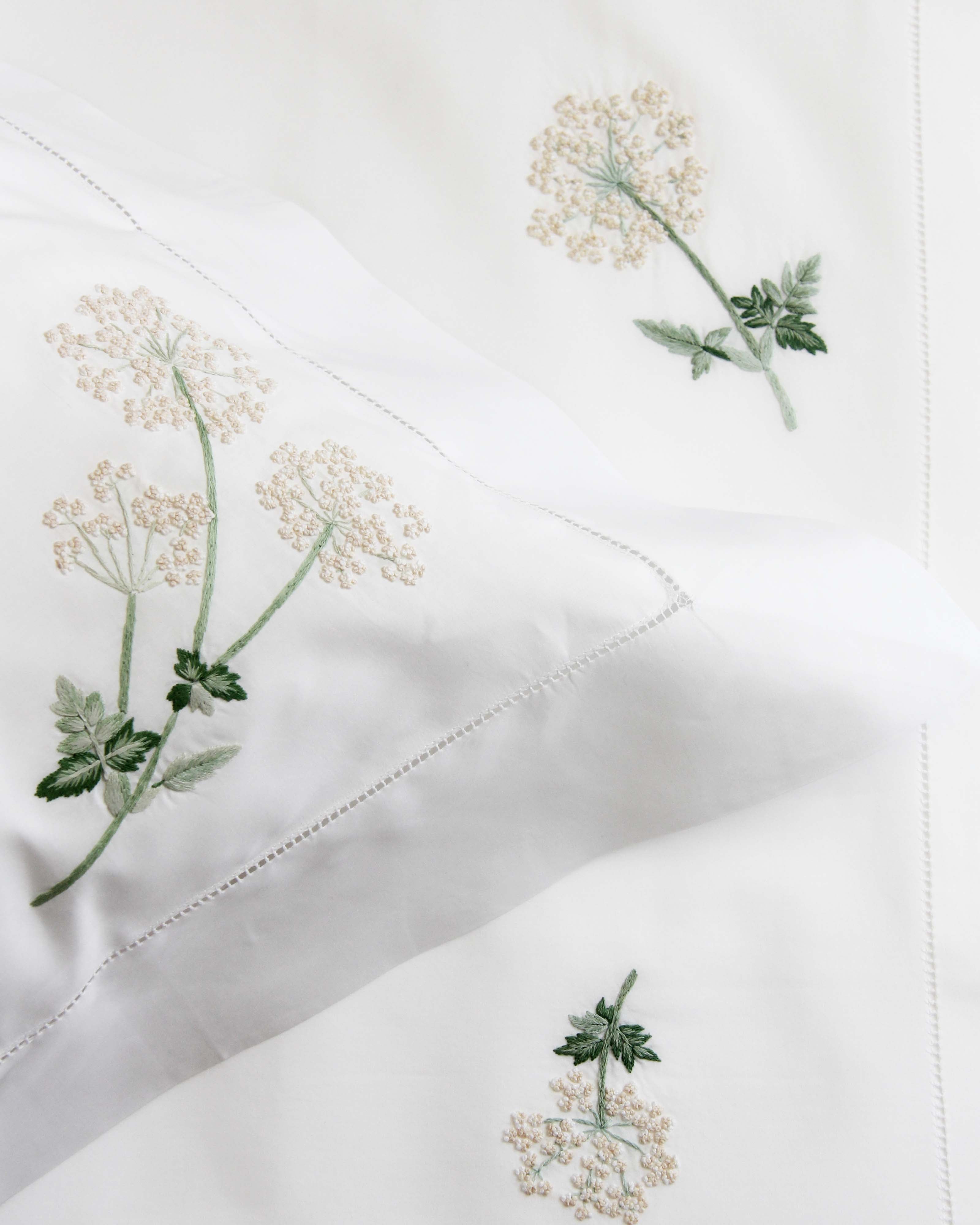 Nos collections de linge de lit haut de gamme rassemblent des parures de lit, des housses de couette, des draps brodés, des taies d’oreiller ou encore des draps housse, imaginés pour créer un ensemble harmonieux. Chaque broderie, chaque finition témoigne d’un savoir-faire transmis avec rigueur, au service d’un luxe discret et durable.