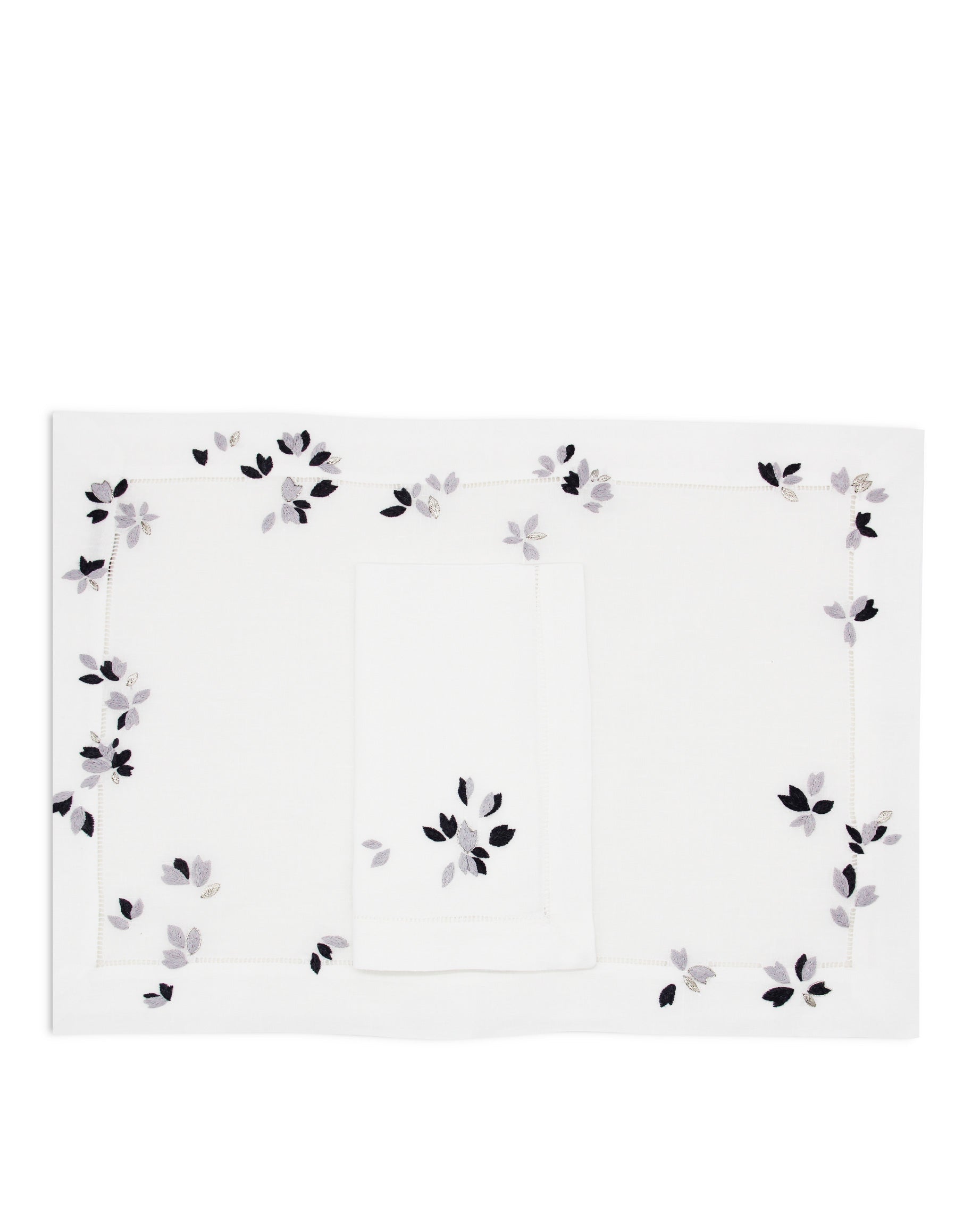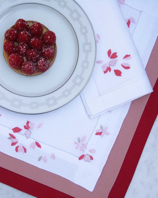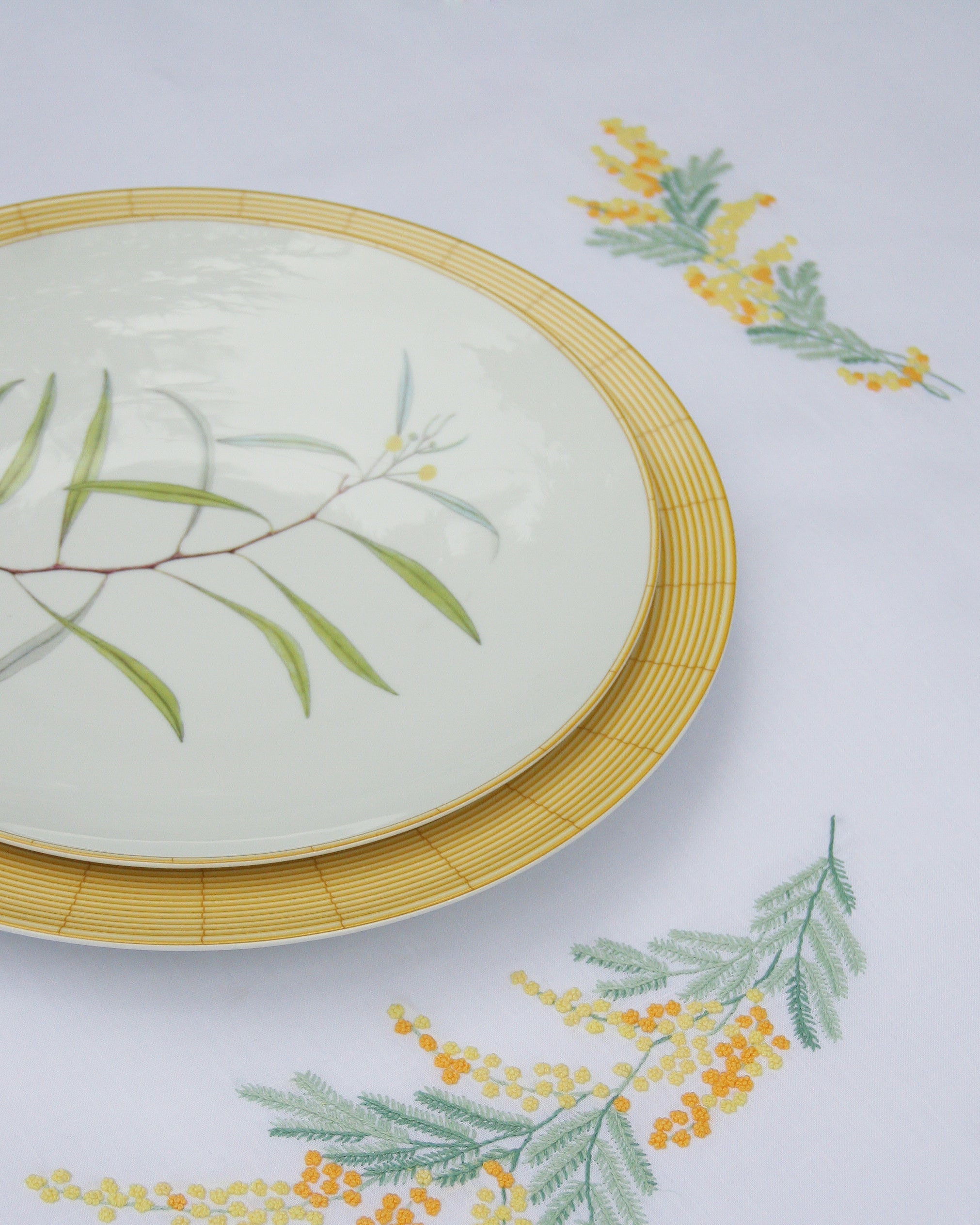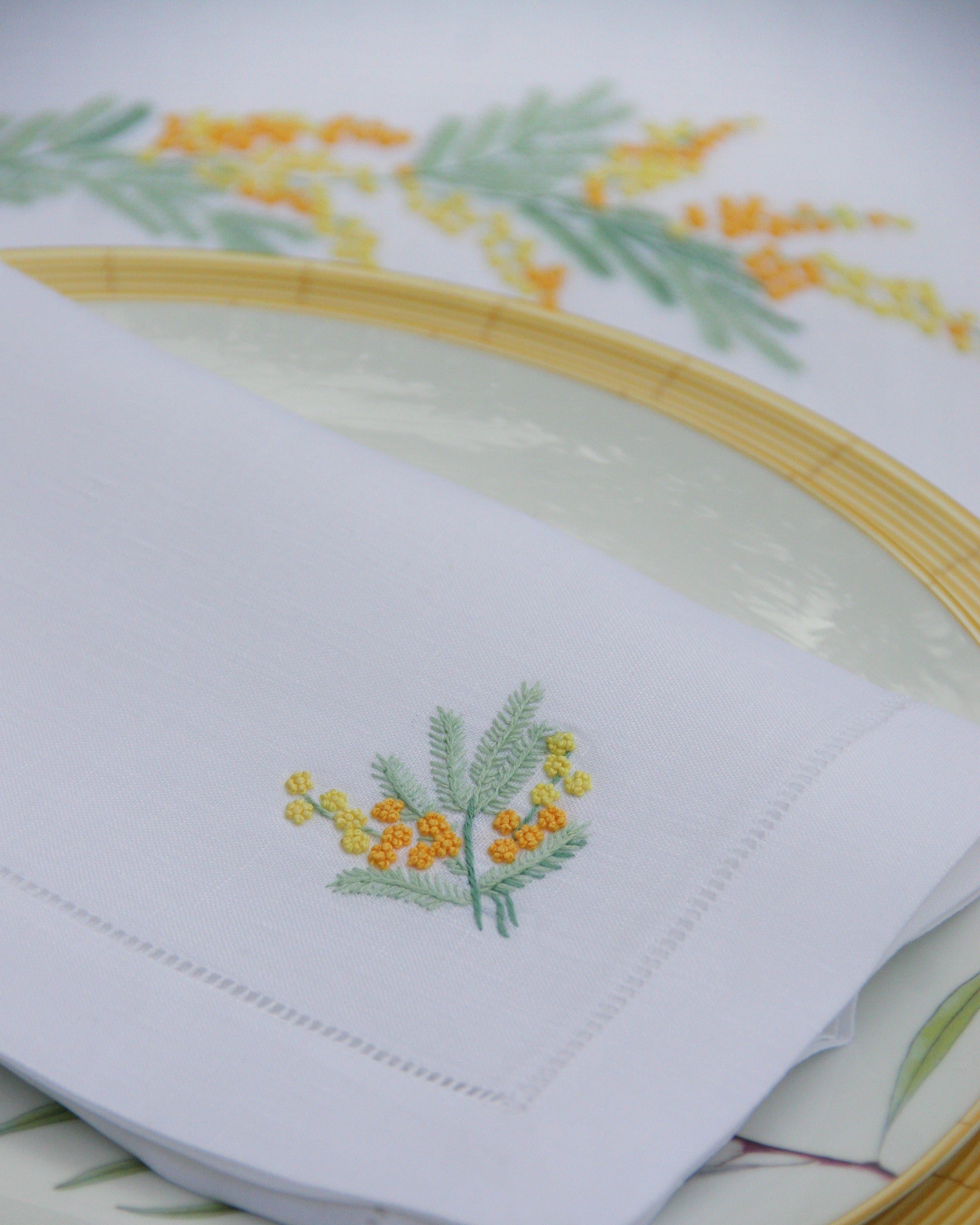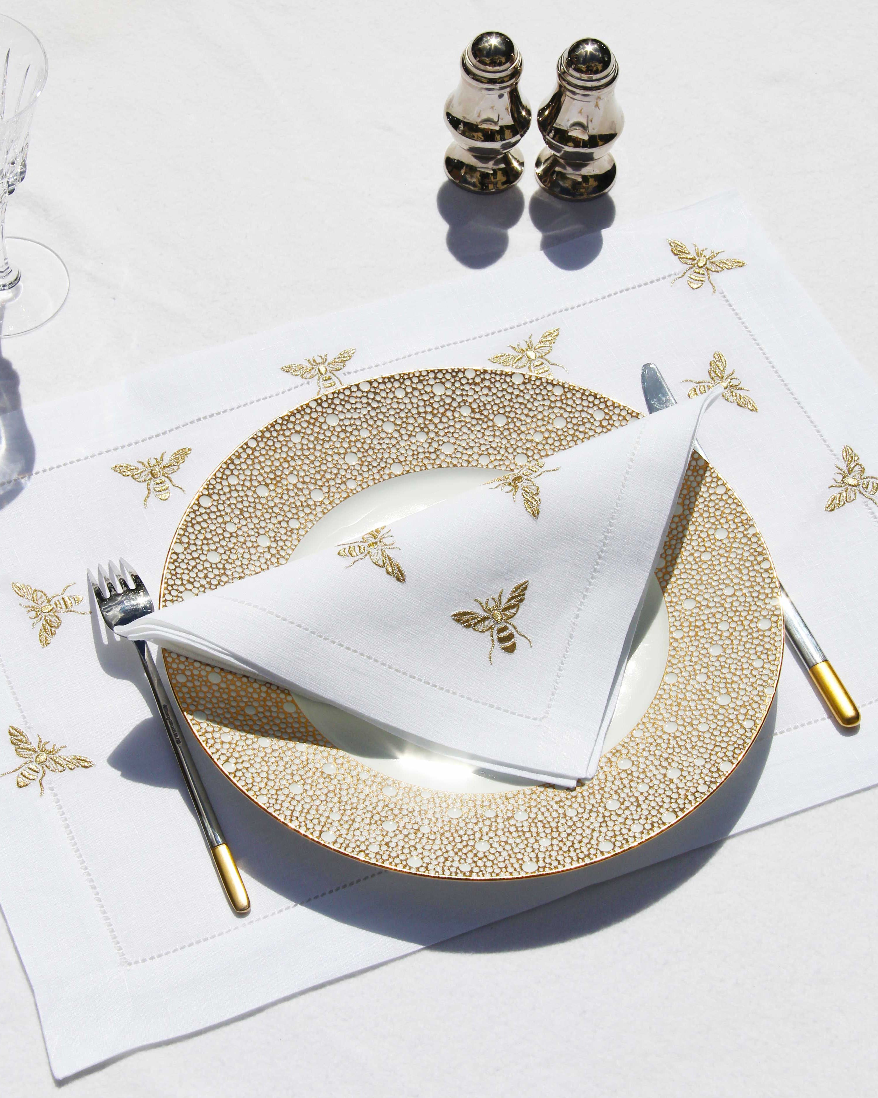 Tissés dans les plus belles matières et brodés à la main dans nos ateliers français, ces éléments témoignent d’une volonté : réinventer le linge de table avec noblesse, exigence et poésie.