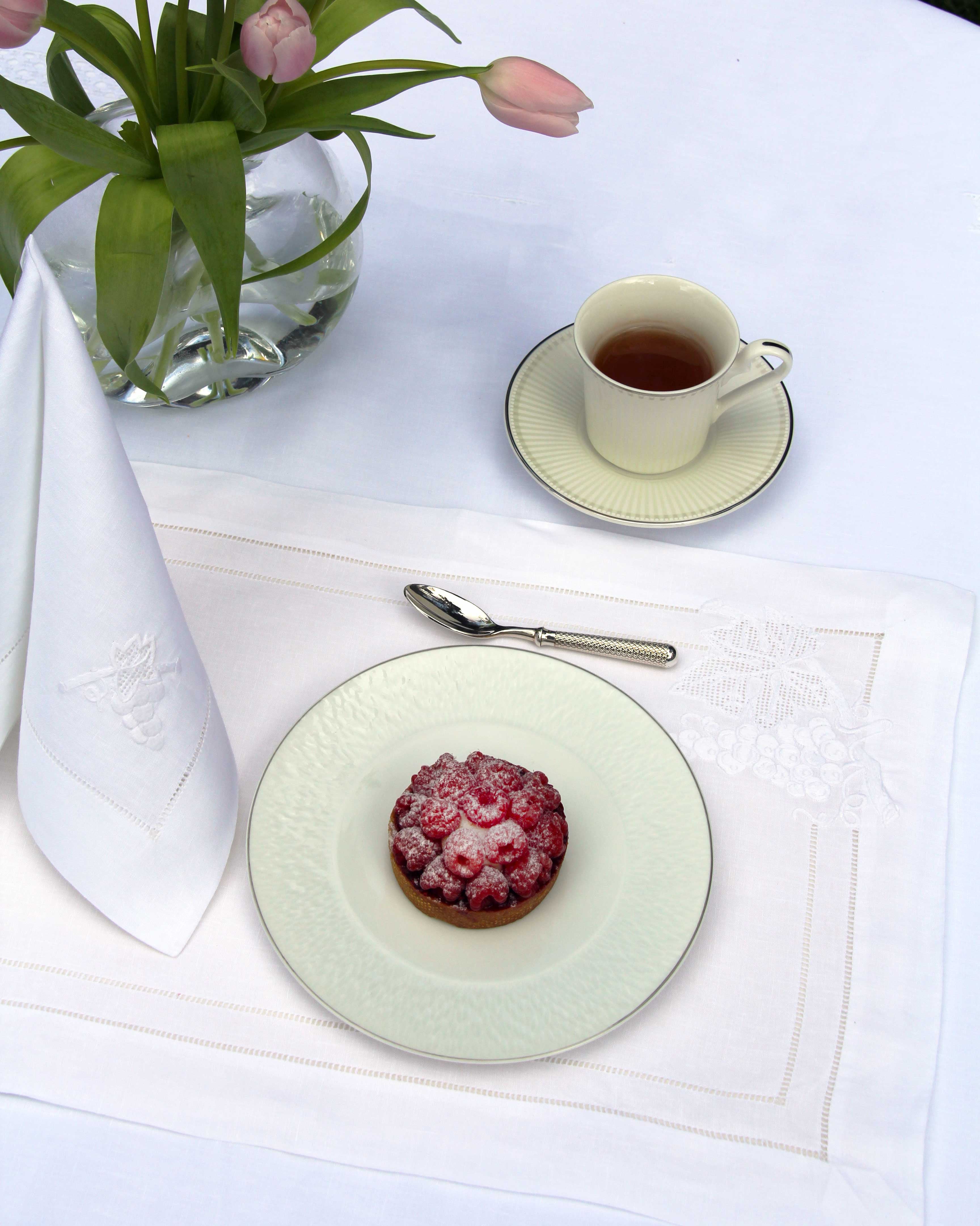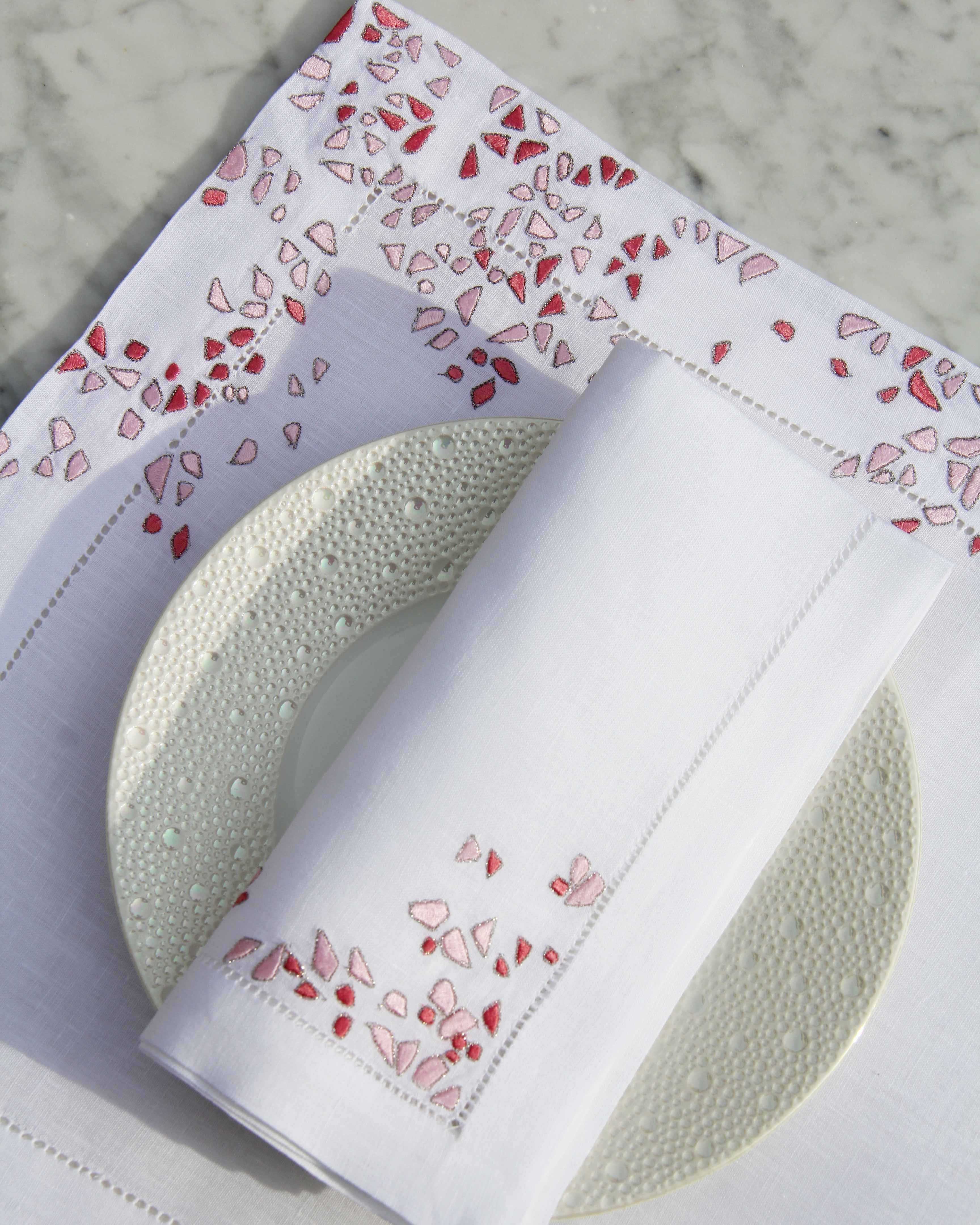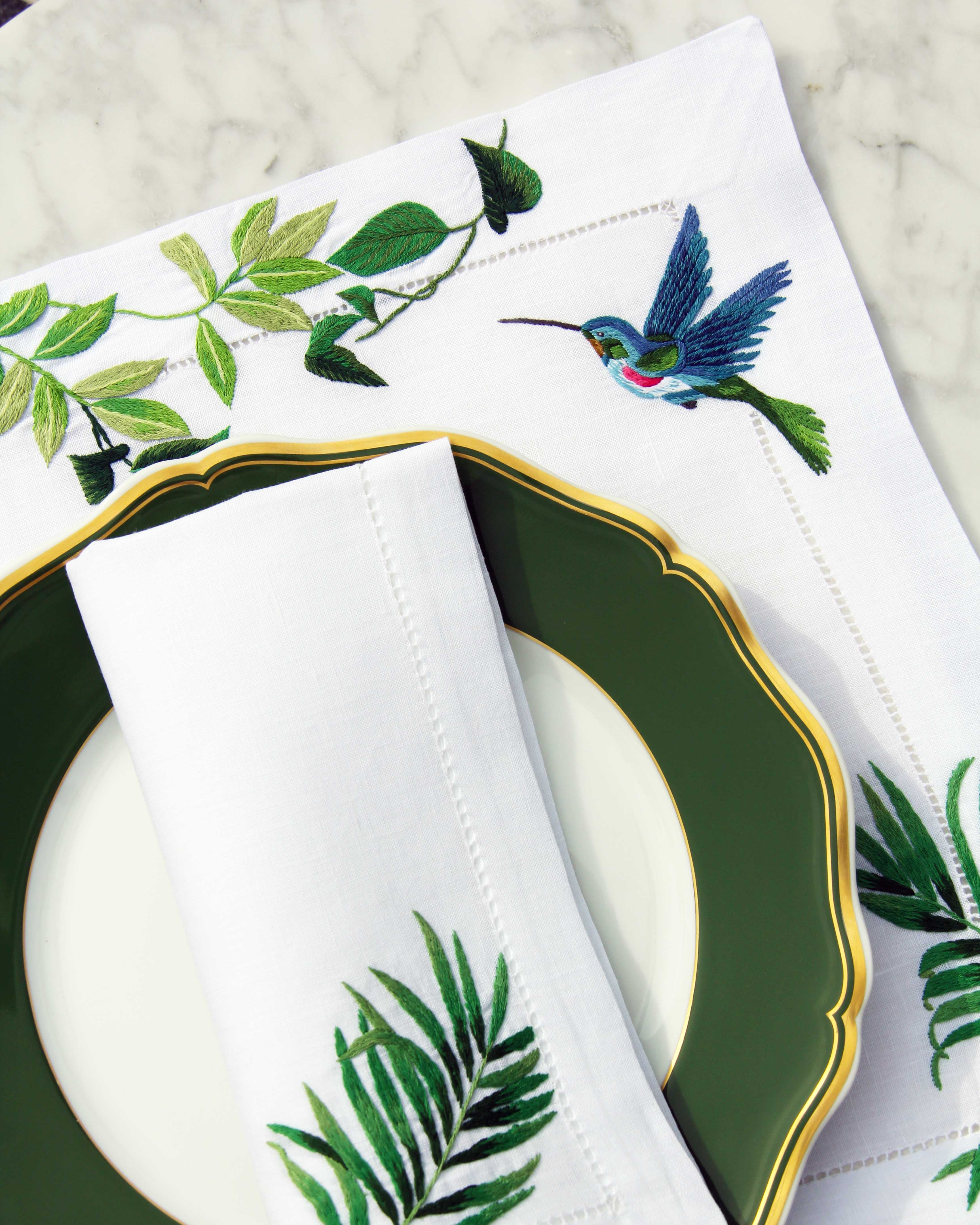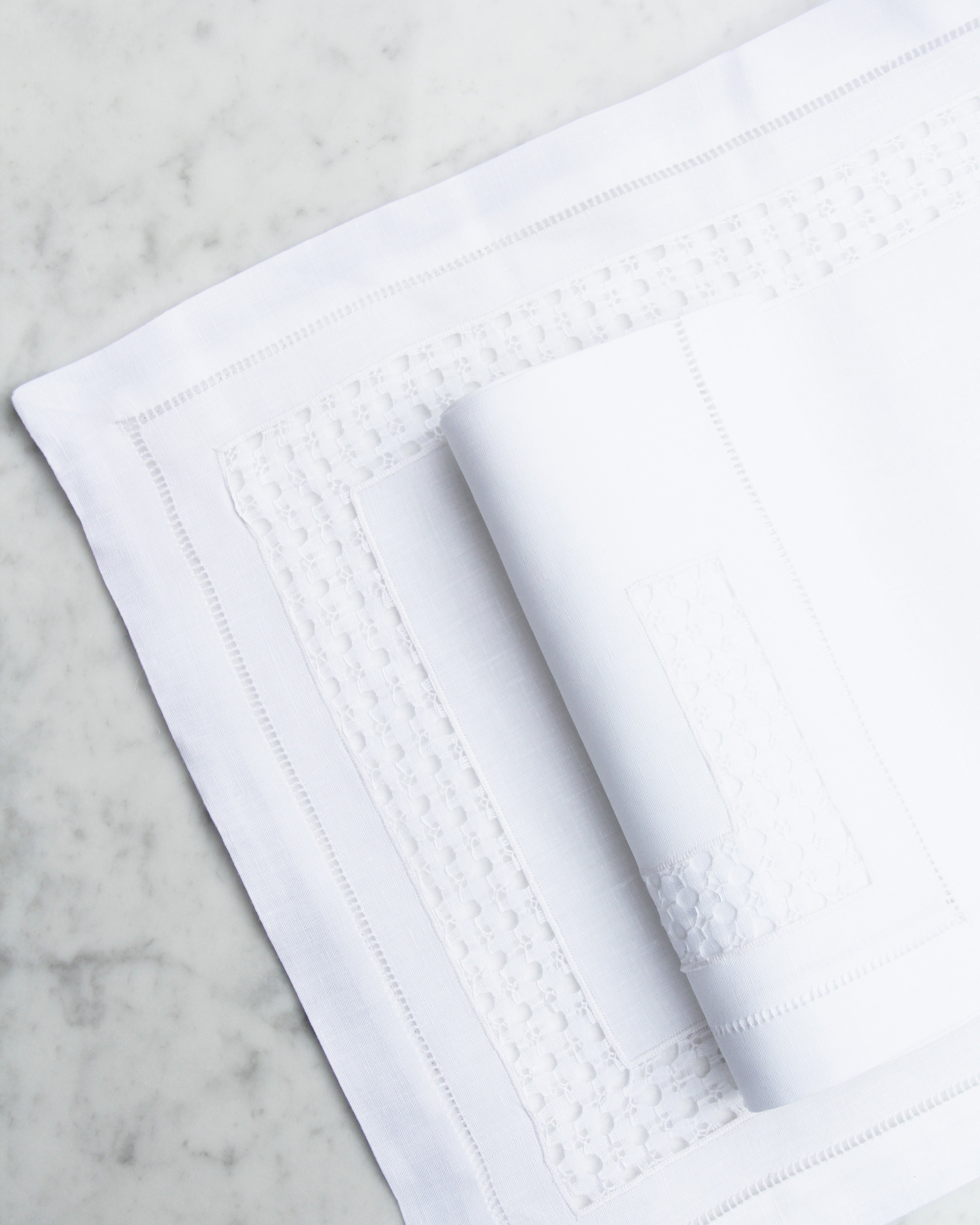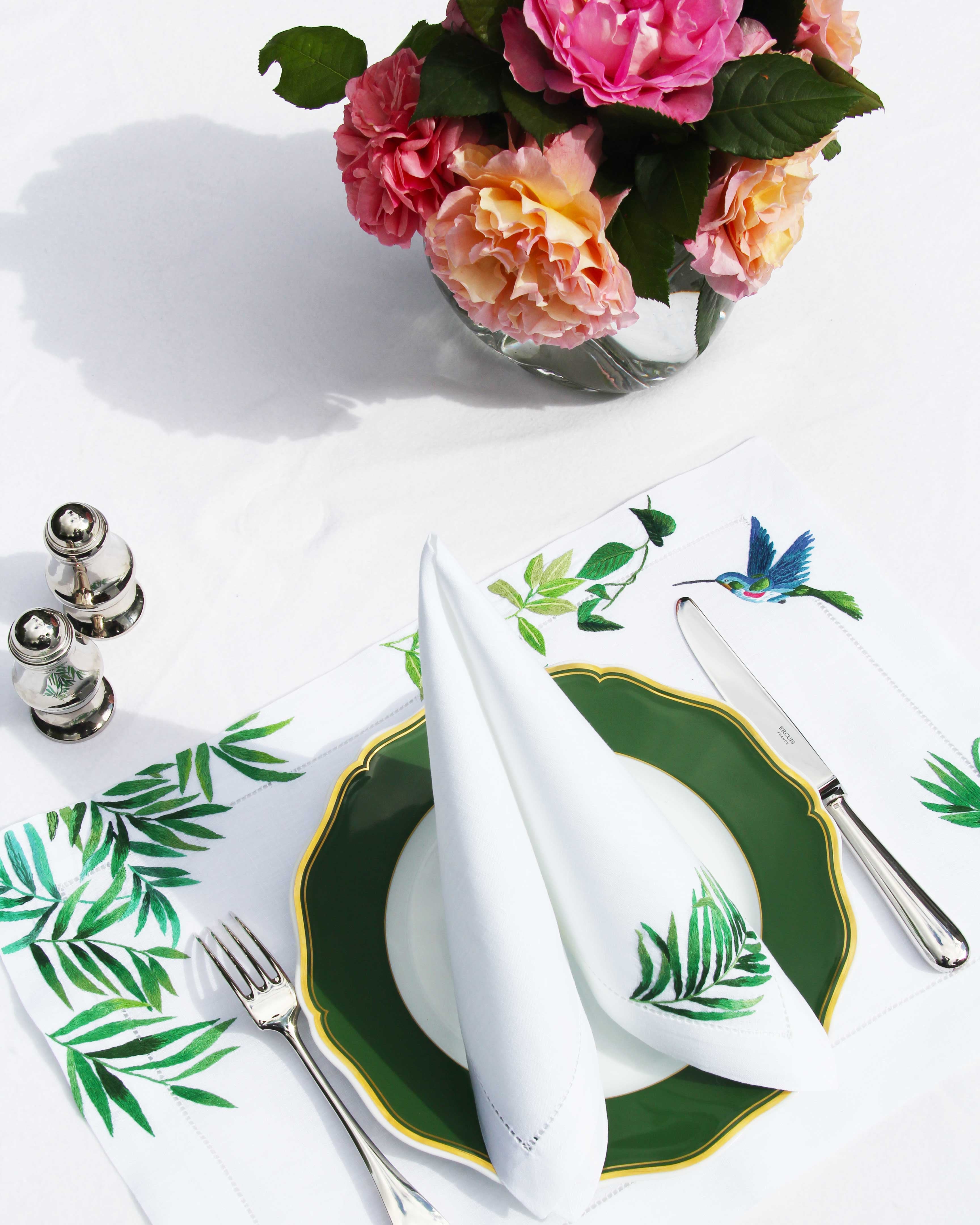 Tissés dans les plus belles matières et brodés à la main dans nos ateliers français, ces éléments témoignent d’une volonté : réinventer le linge de table avec noblesse, exigence et poésie.