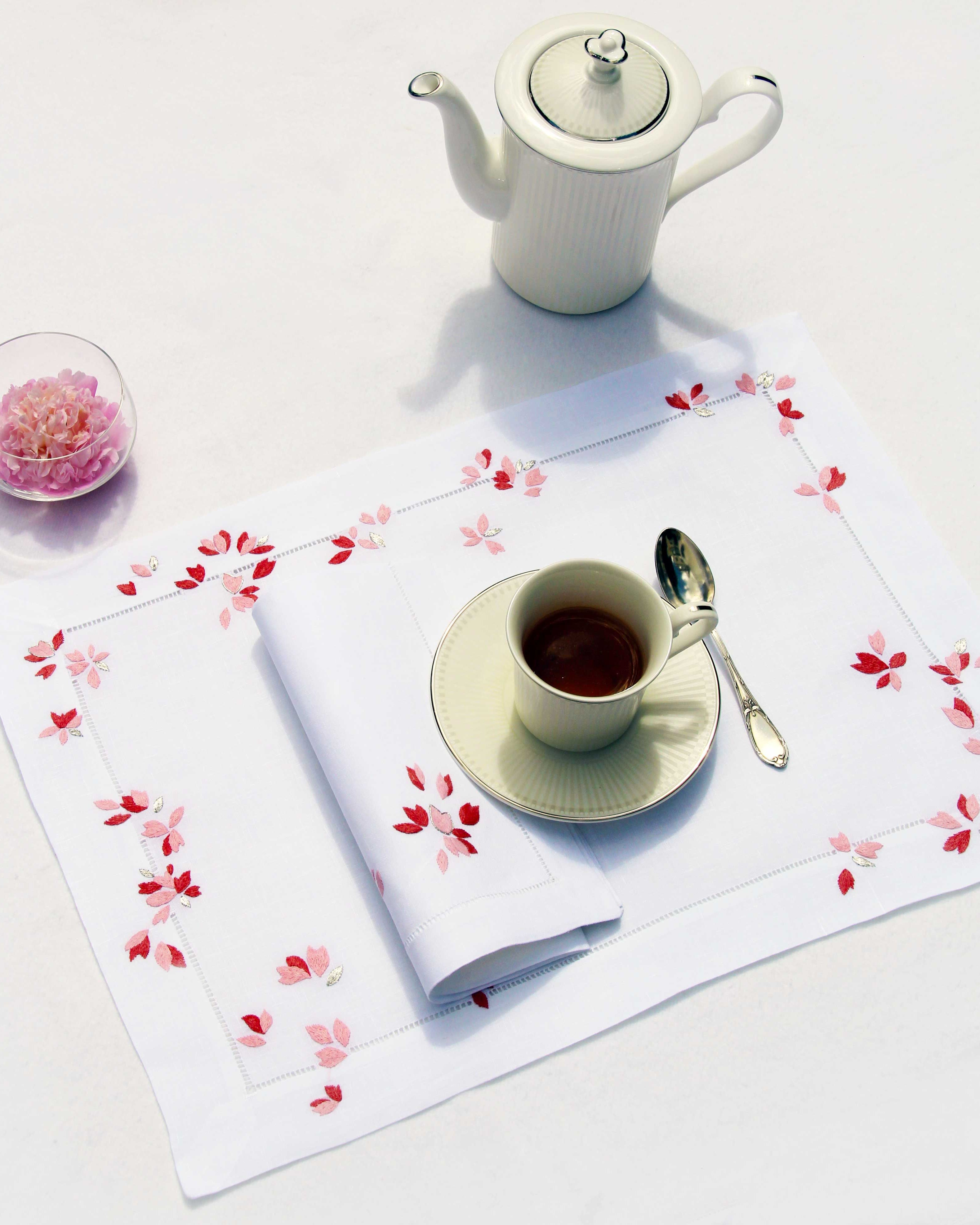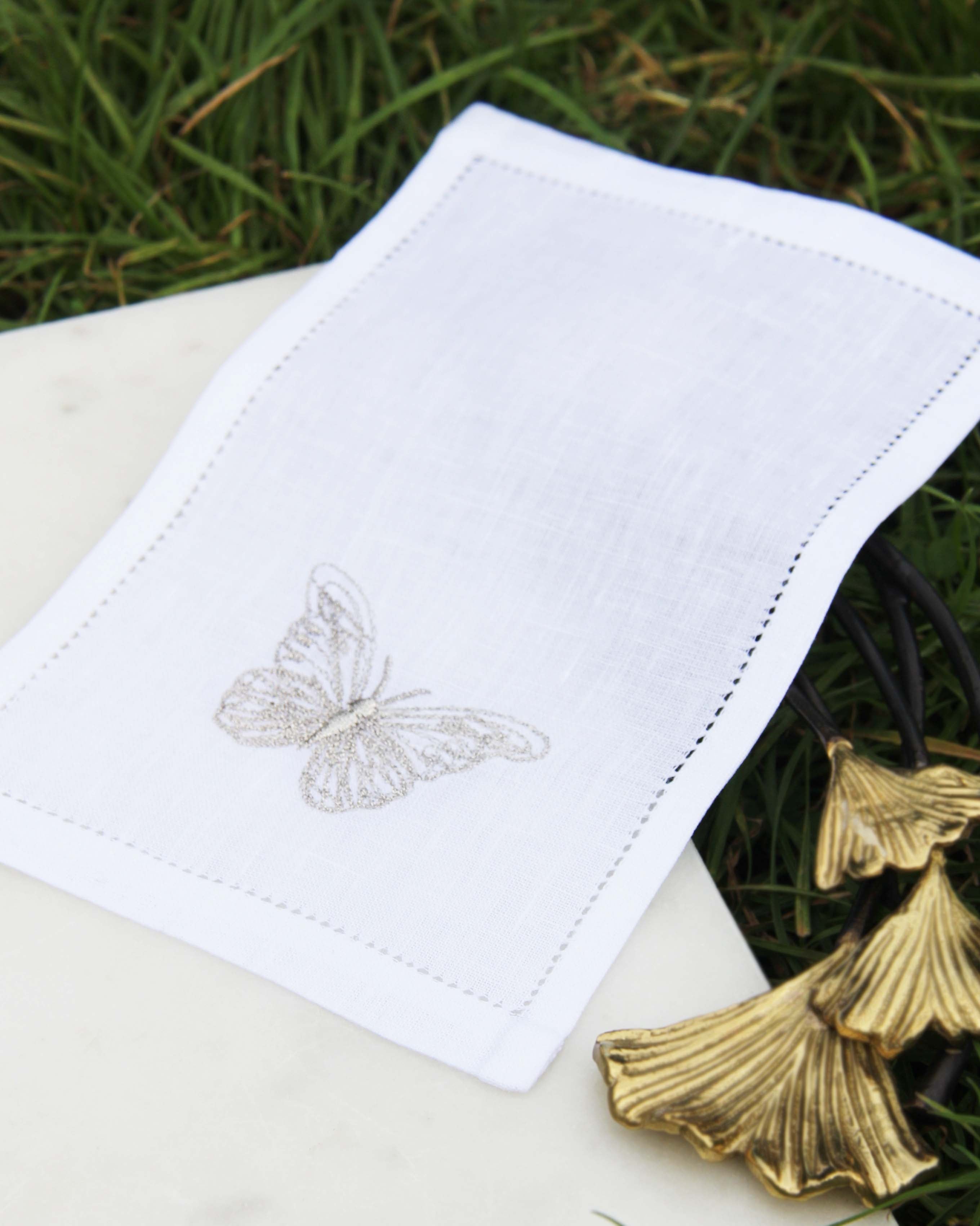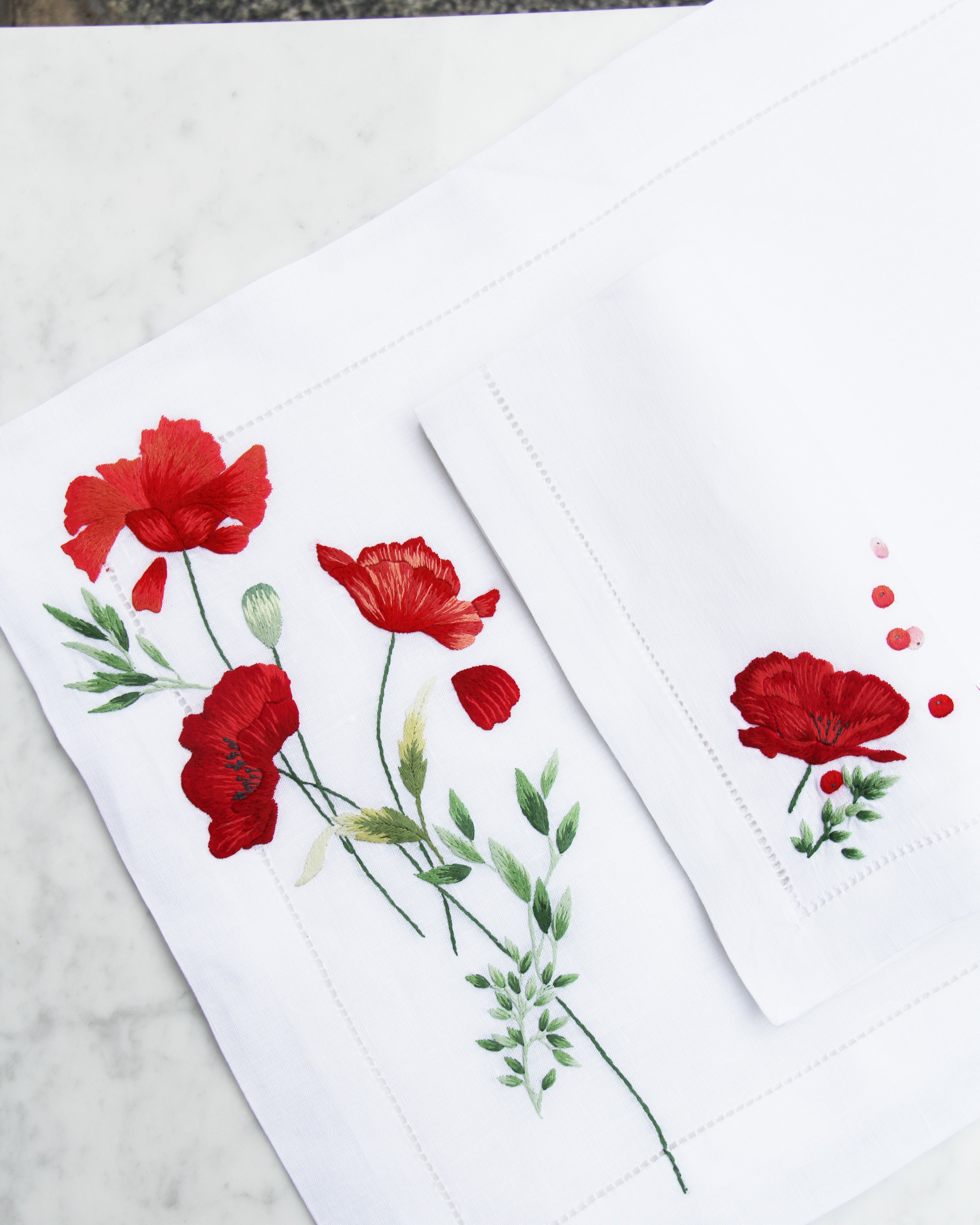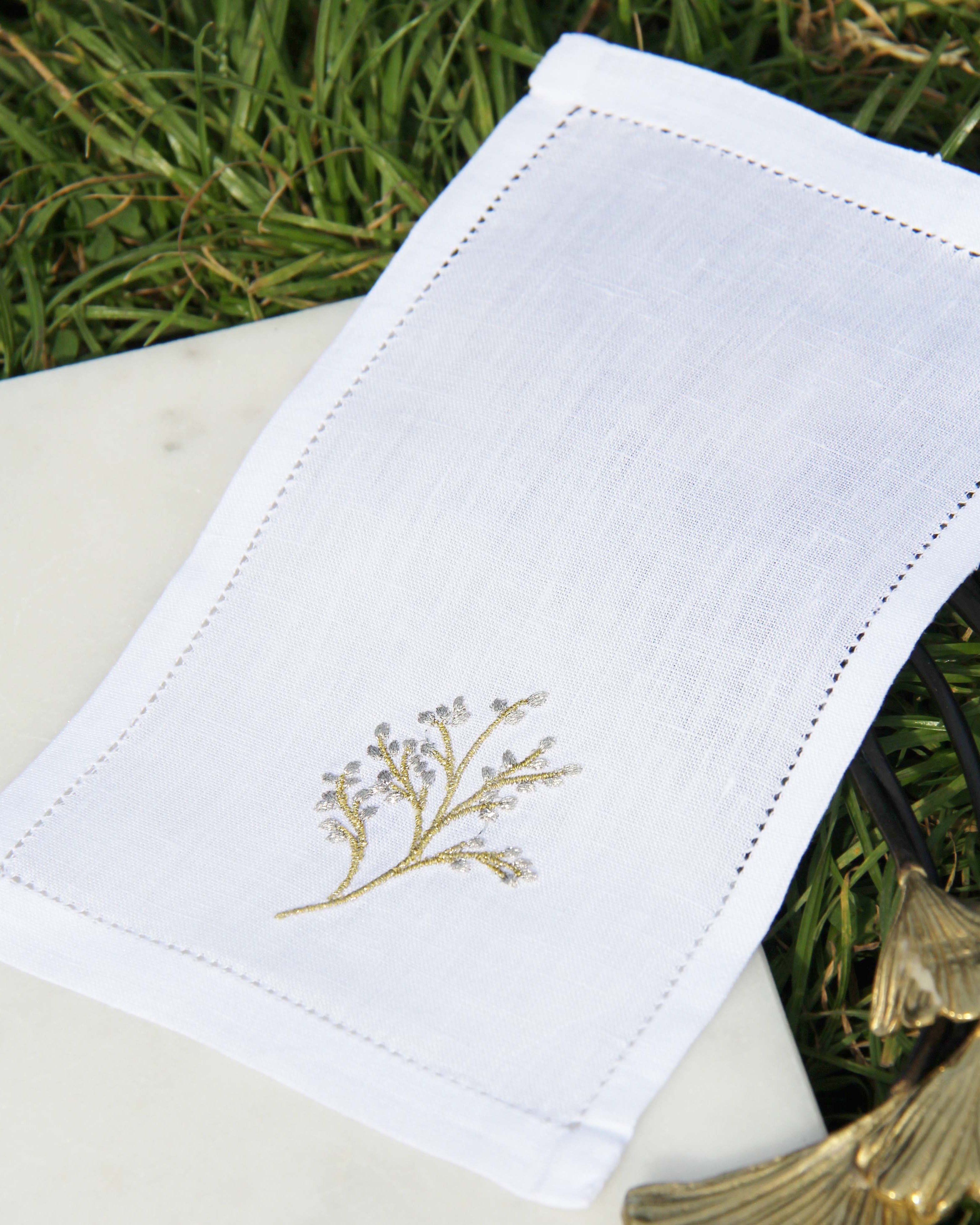 Tissés dans les plus belles matières et brodés à la main dans nos ateliers français, ces éléments témoignent d’une volonté : réinventer le linge de table avec noblesse, exigence et poésie.
