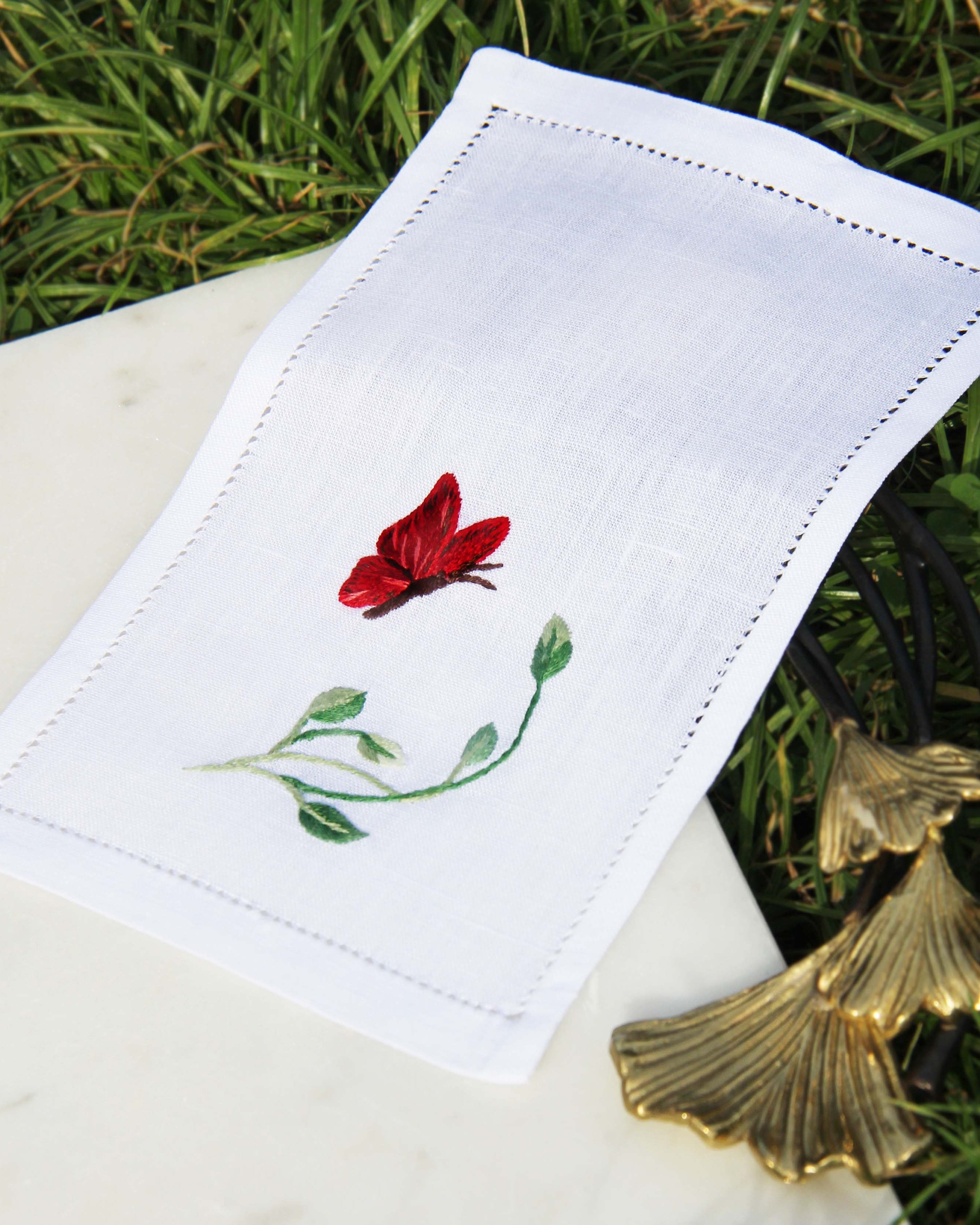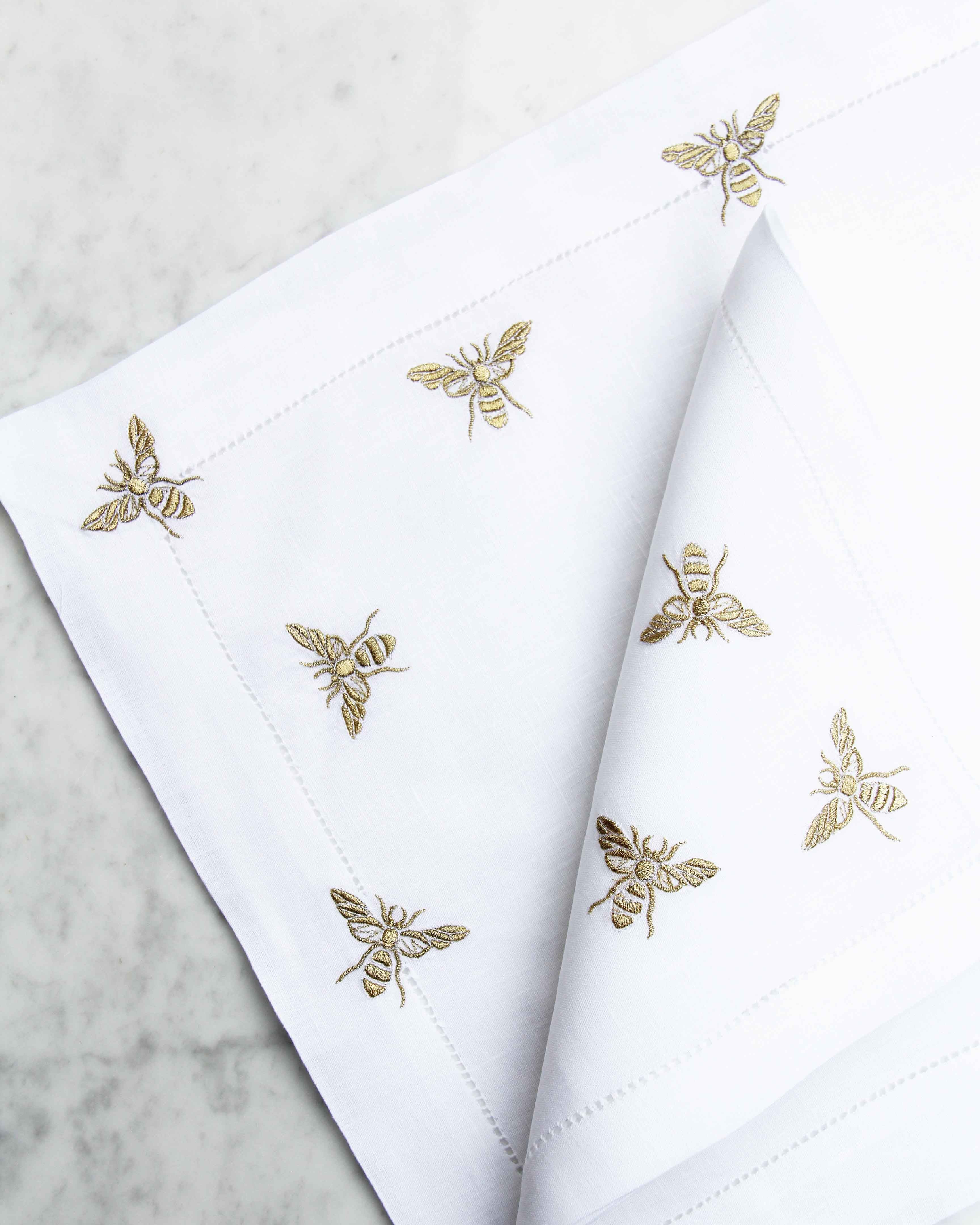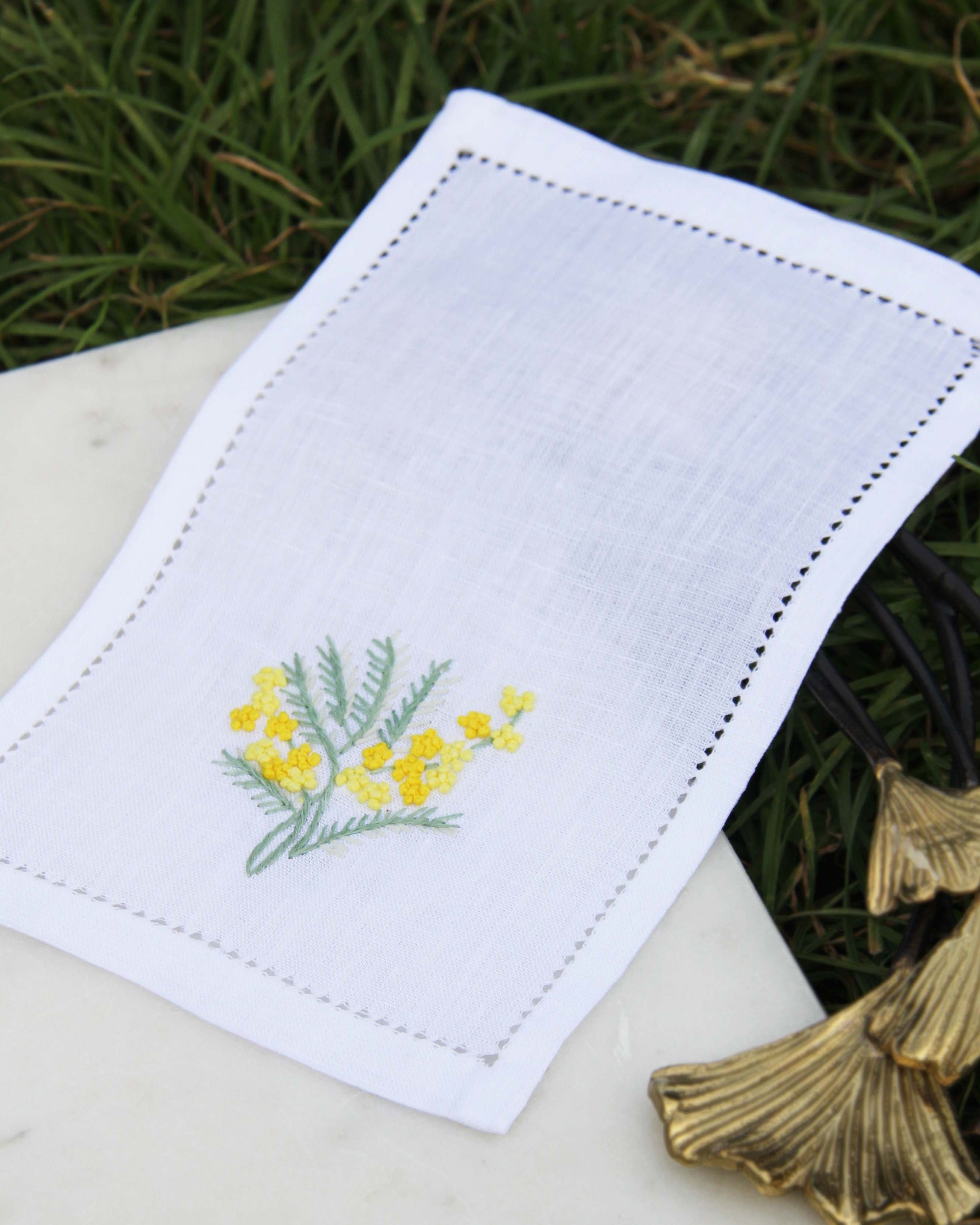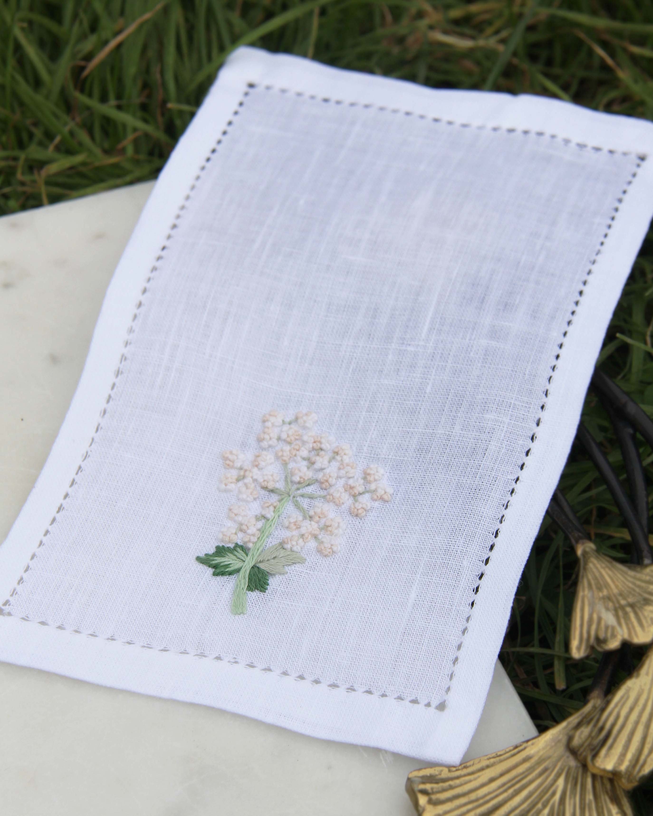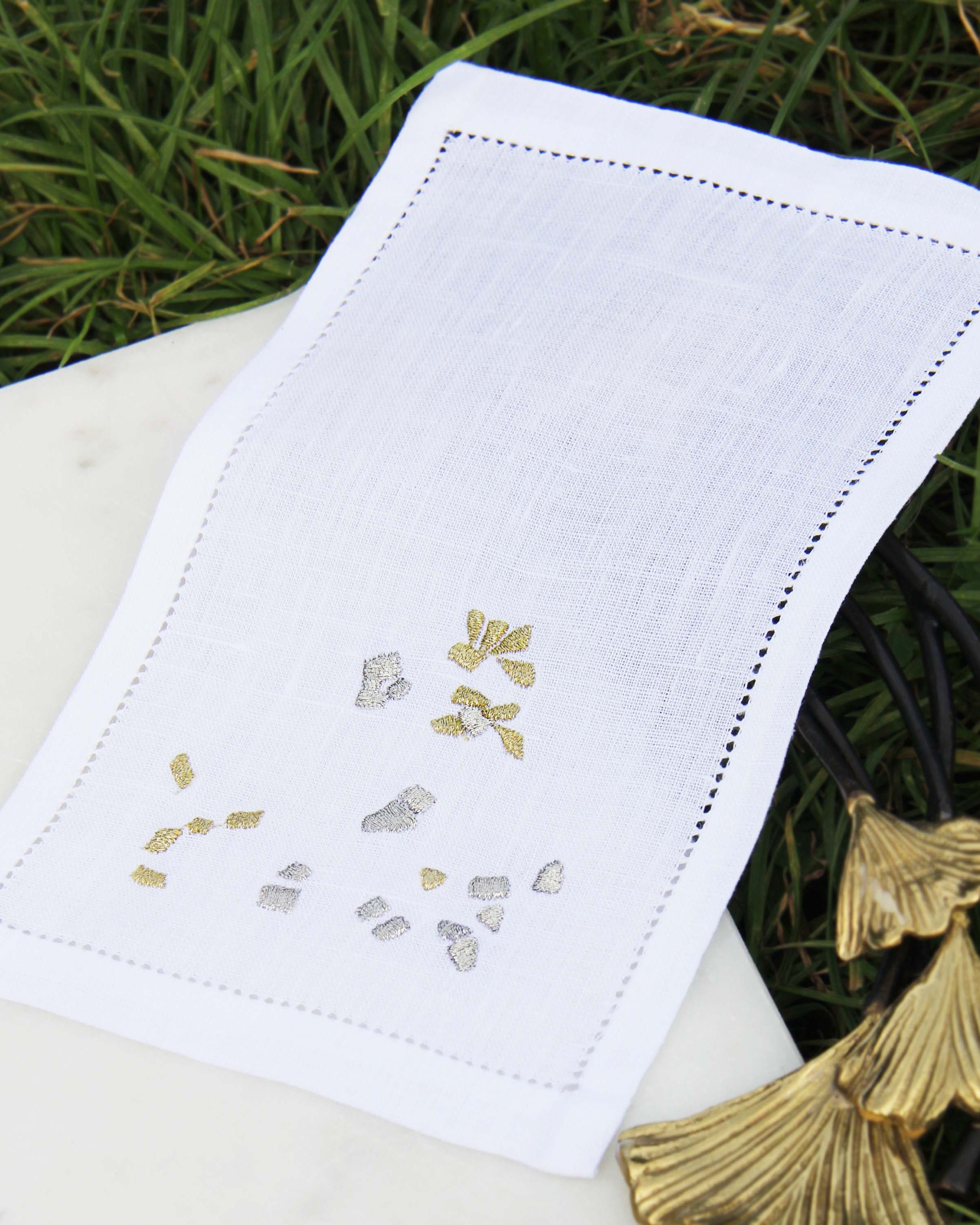 Tissés dans les plus belles matières et brodés à la main dans nos ateliers français, ces éléments témoignent d’une volonté : réinventer le linge de table avec noblesse, exigence et poésie.