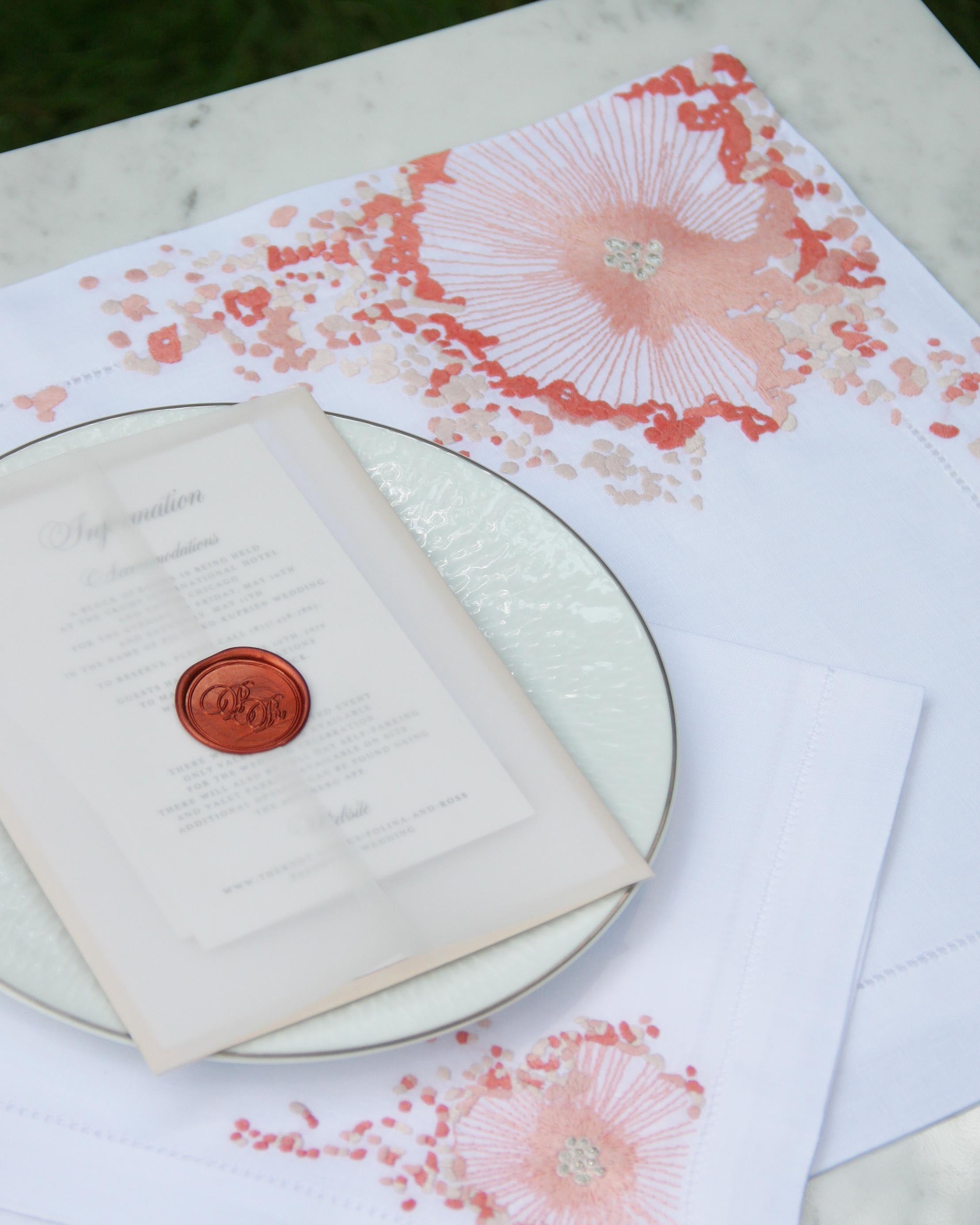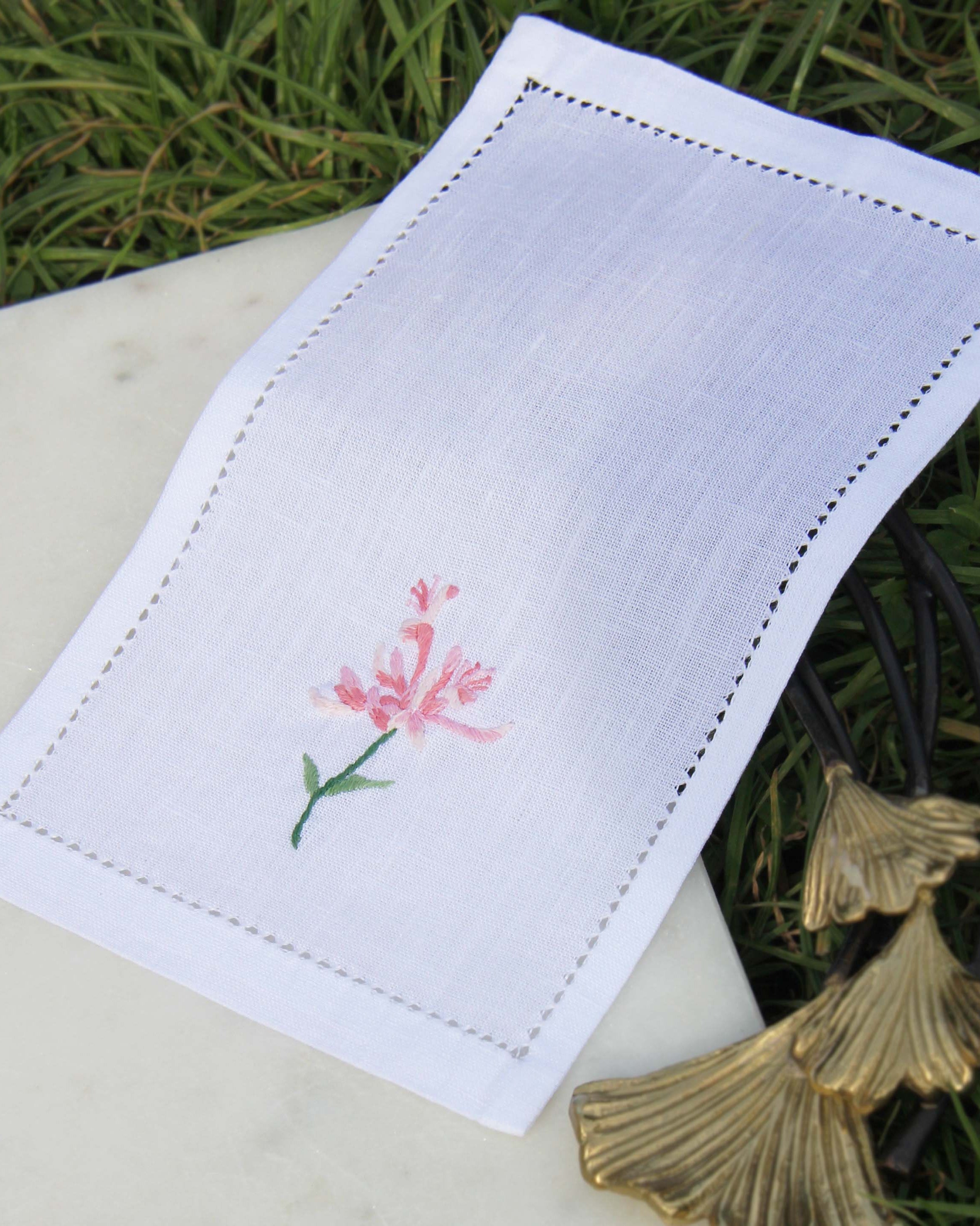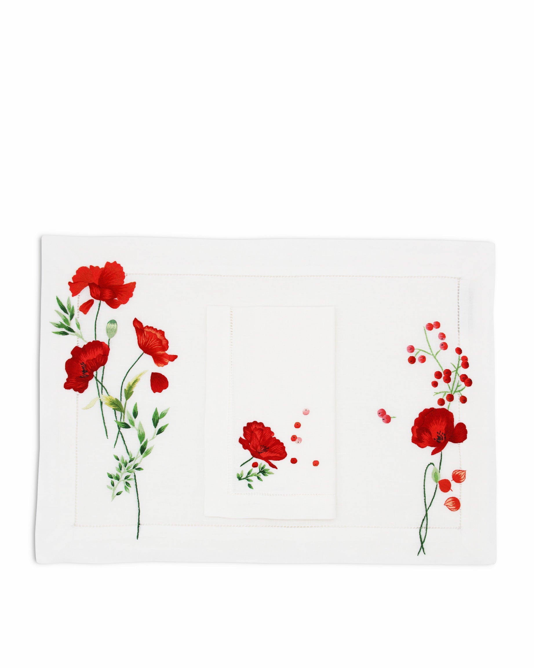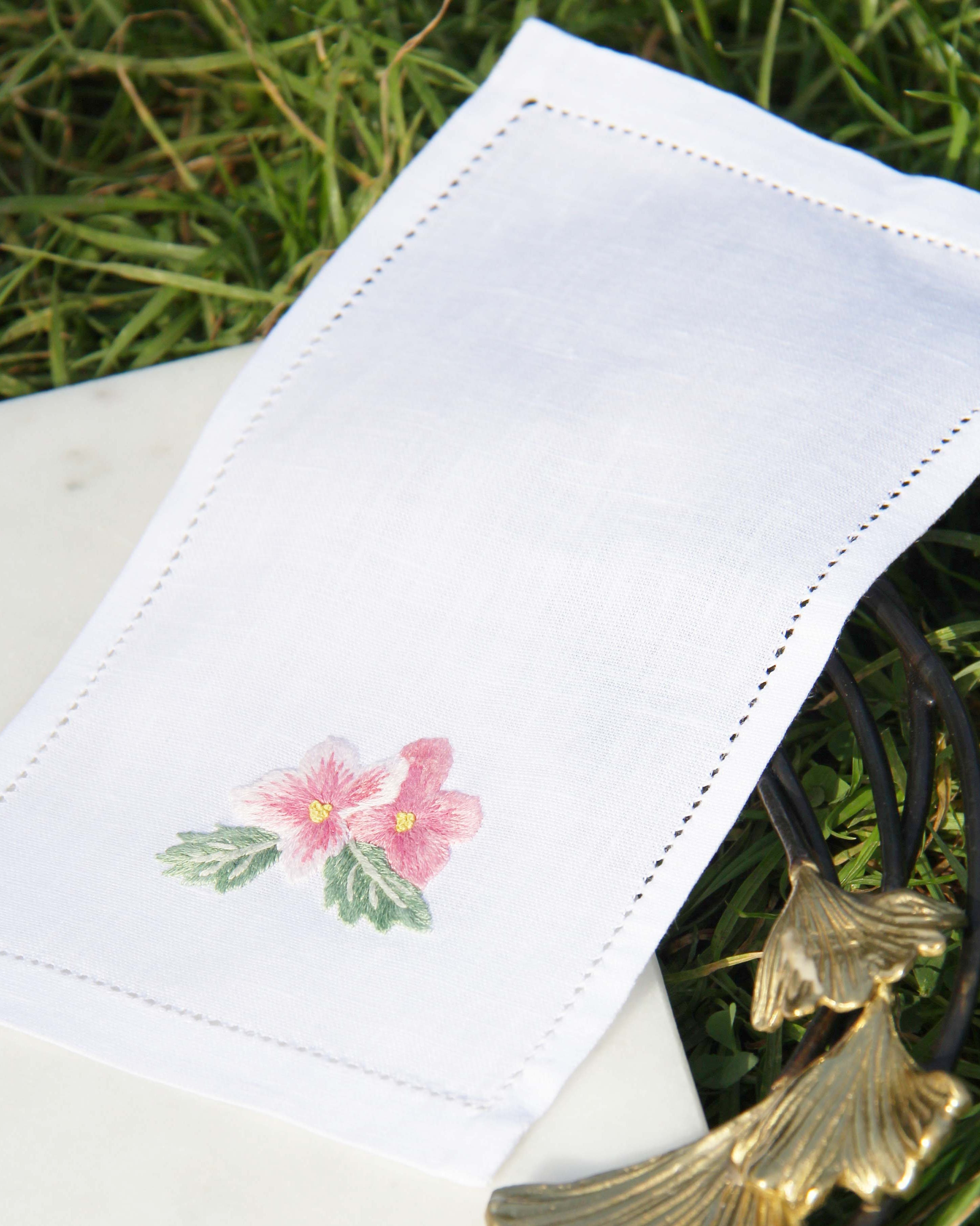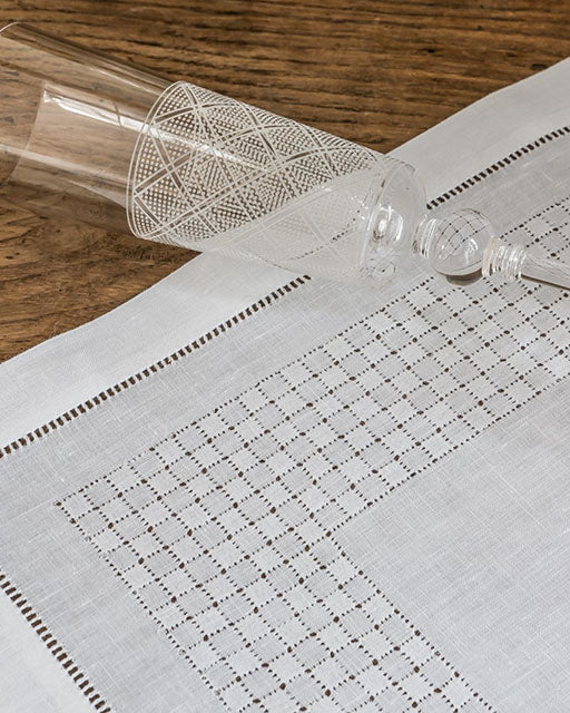 Tissés dans les plus belles matières et brodés à la main dans nos ateliers français, ces éléments témoignent d’une volonté : réinventer le linge de table avec noblesse, exigence et poésie.