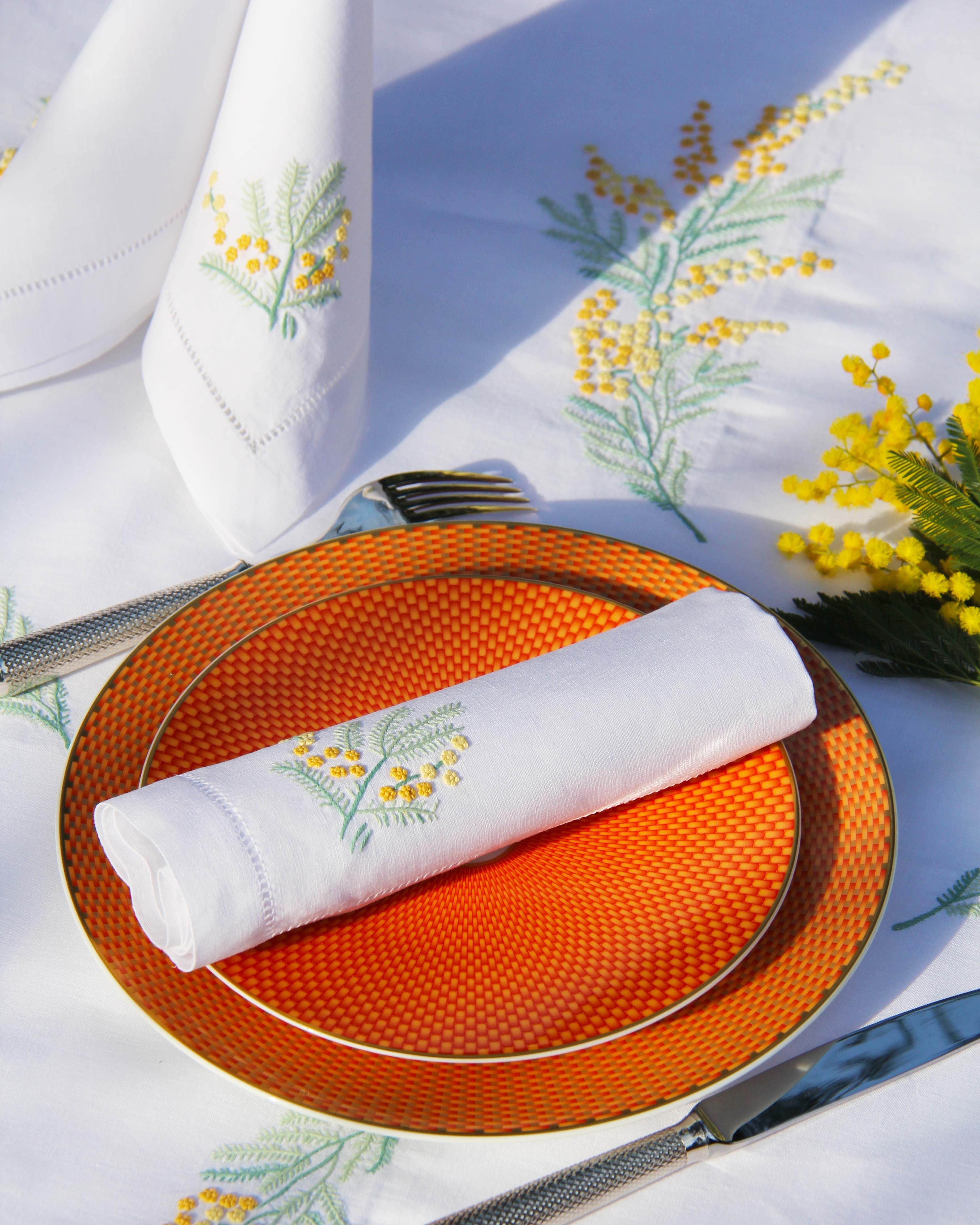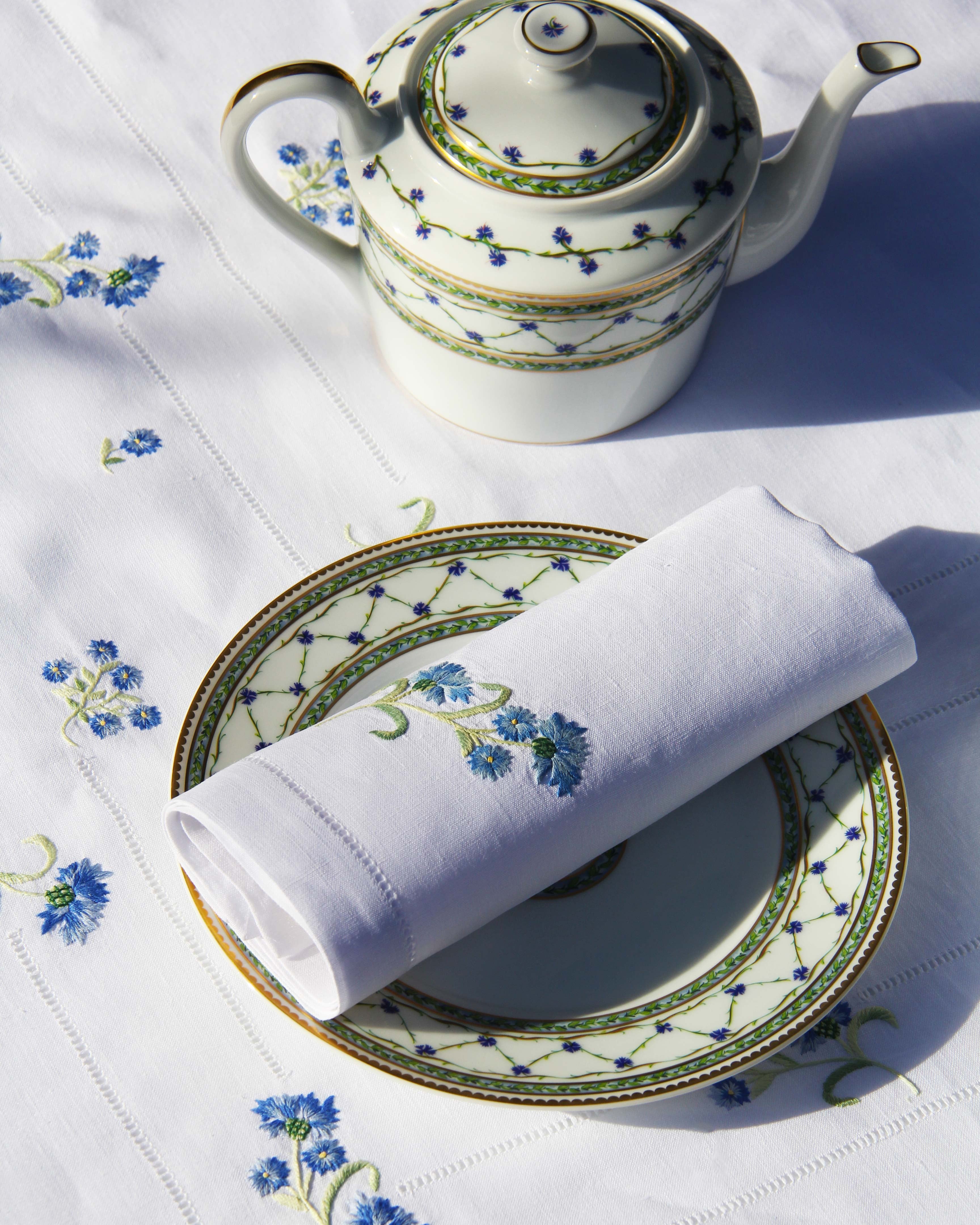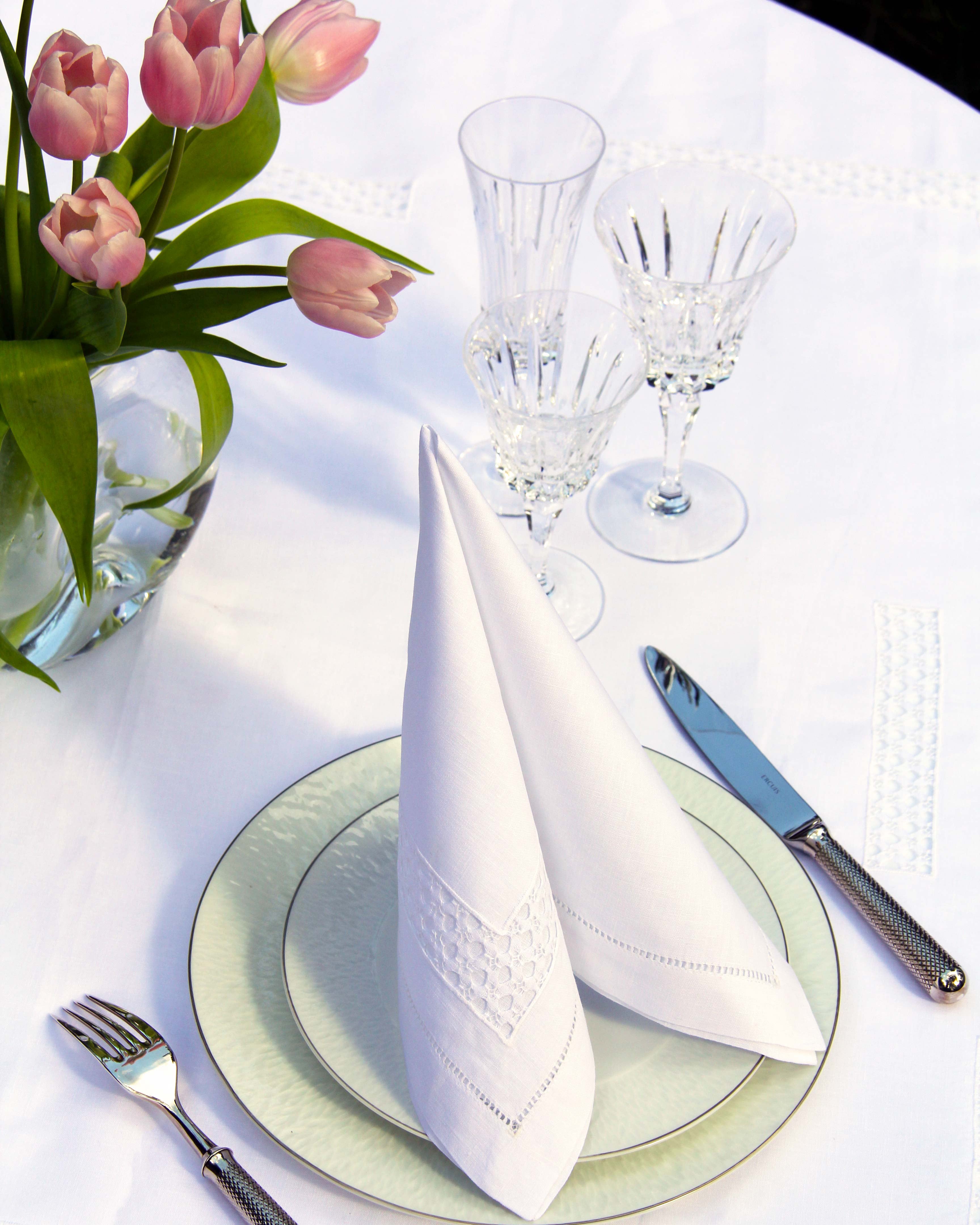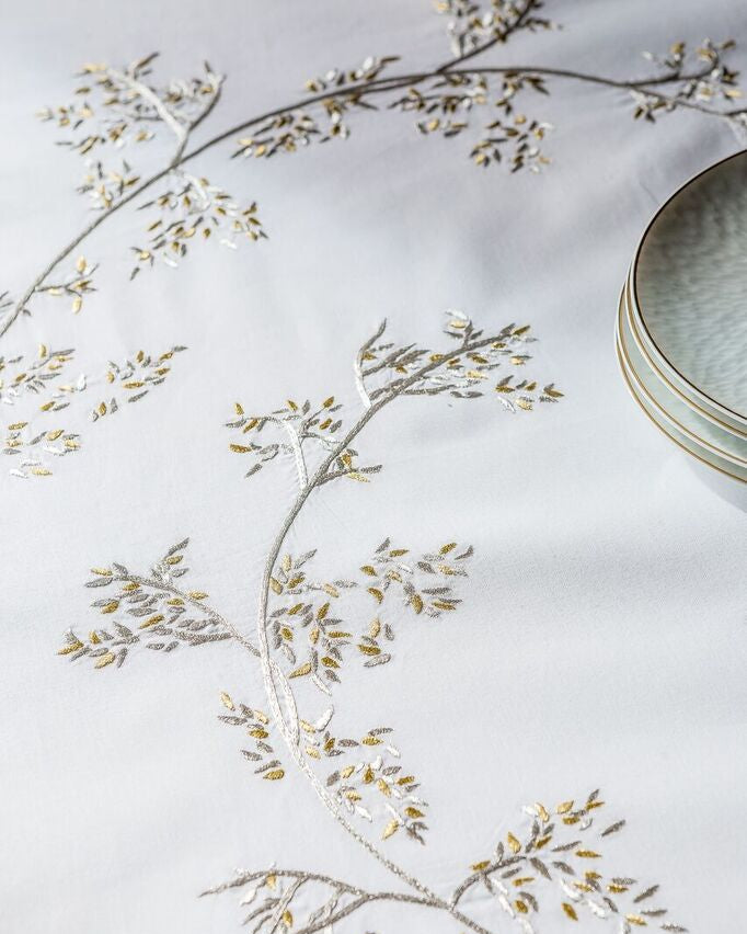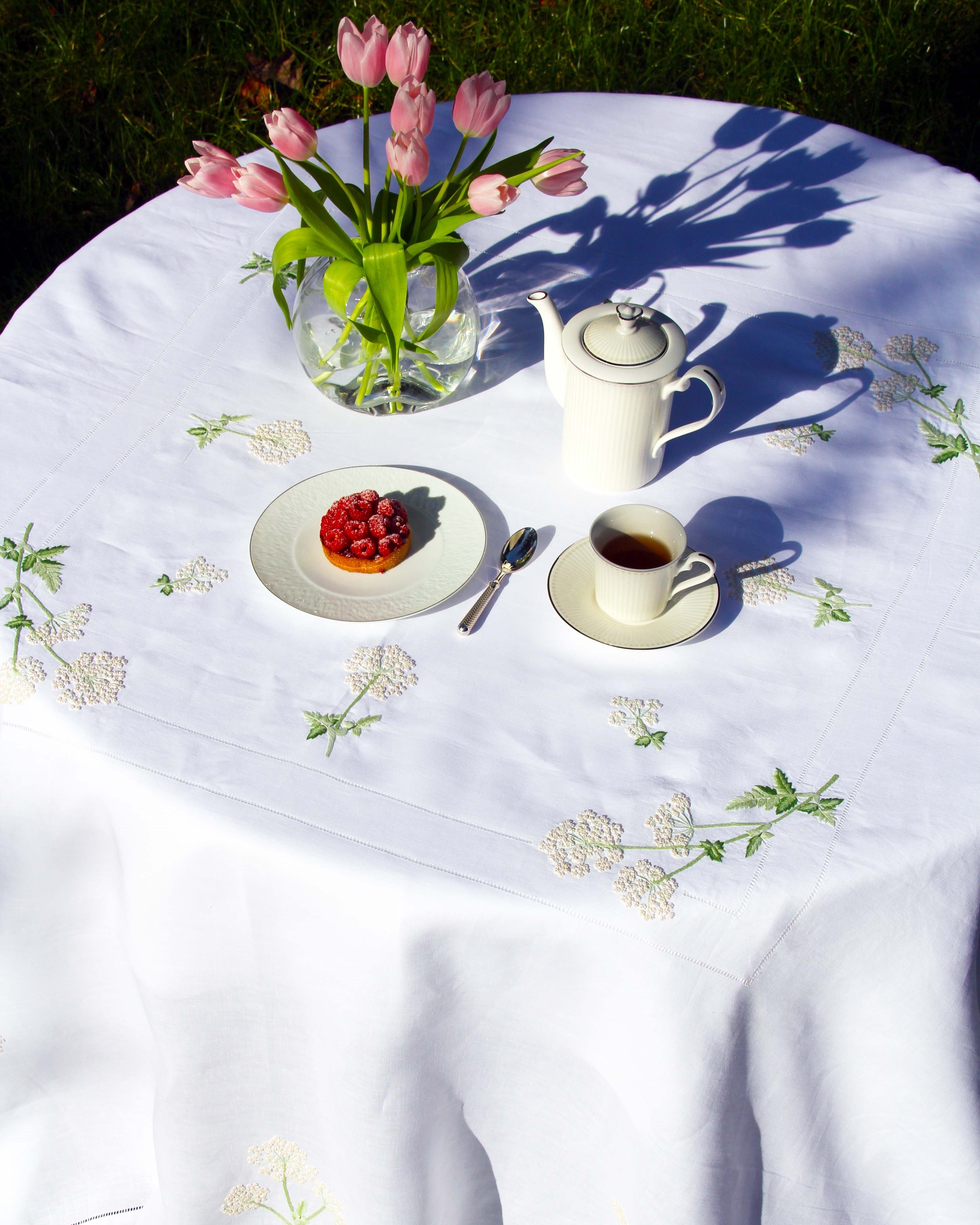 Élément central de la table, la nappe incarne à elle seule l’âme de la réception. Chez Valombreuse, chaque nappe de luxe est conçue comme une pièce maîtresse : brodée à la main, tissée dans les matières les plus nobles, pensée pour sublimer les arts de la table. Nos modèles associent tradition française et élégance discrète, dans une palette de blancs et de tons naturels qui s’adaptent à tous les styles d’intérieur.