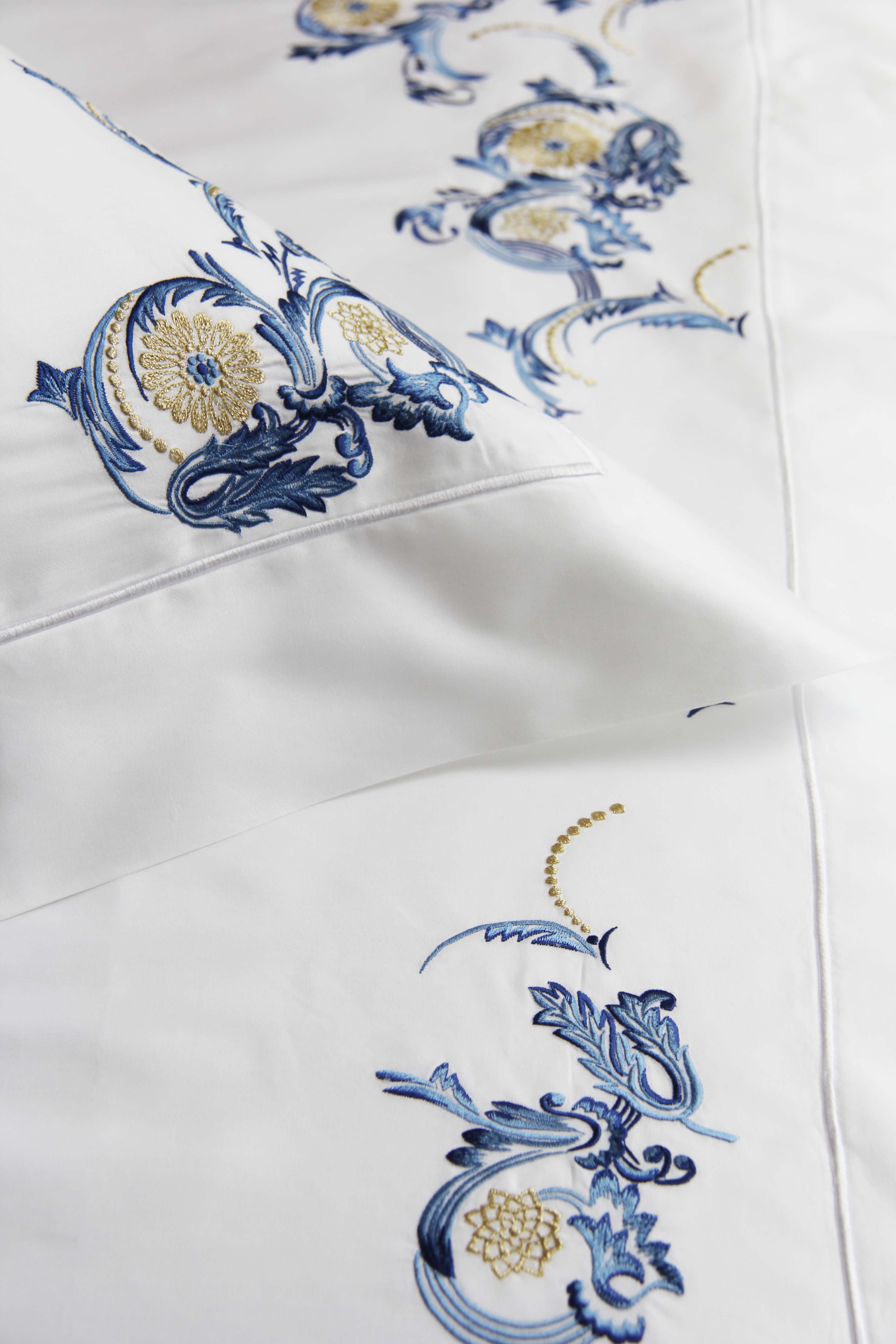 Parure de lit satin de coton Volute majestueuse bleu foncé