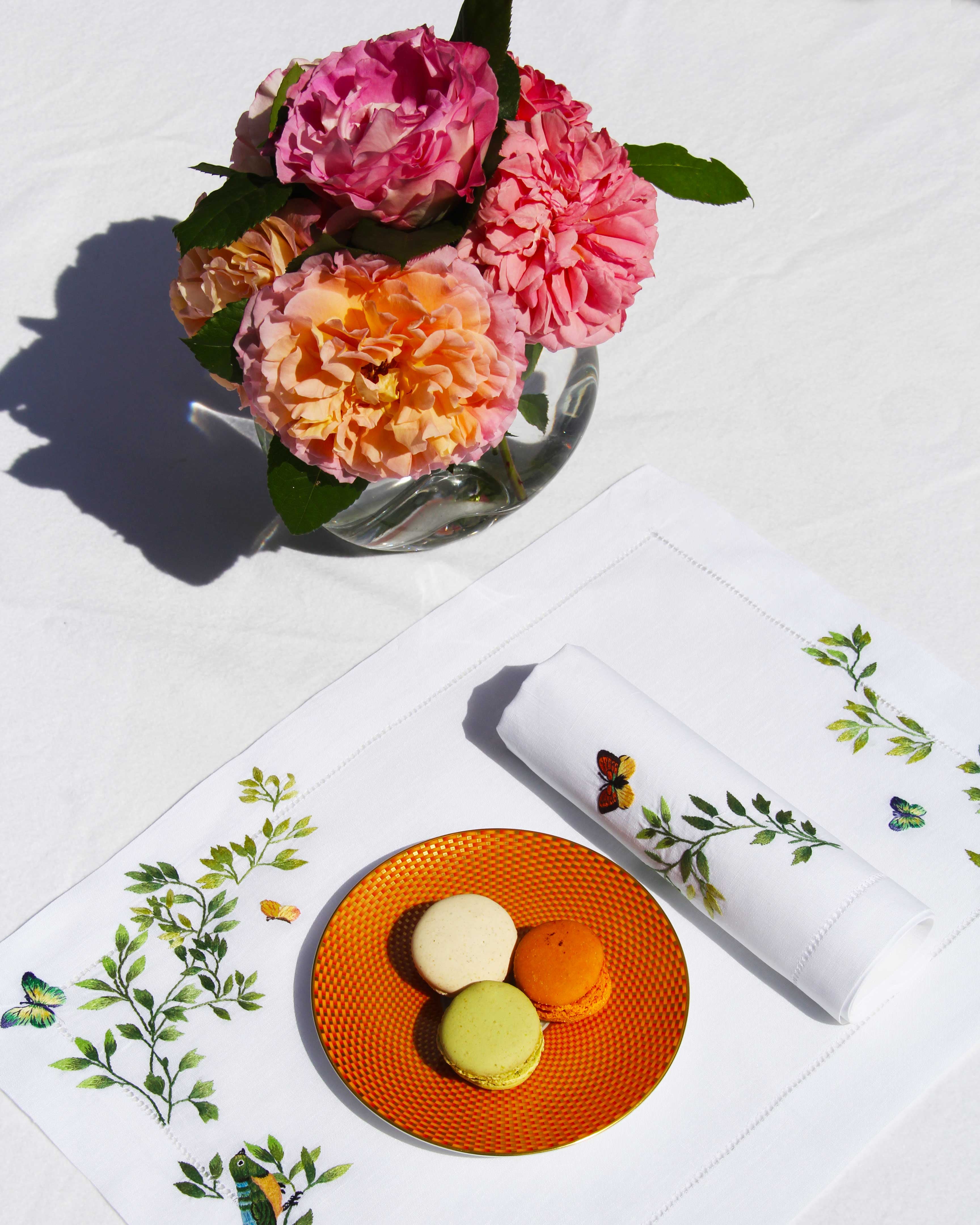 Les sets de table Valombreuse sont bien plus que de simples accessoires : ce sont des pièces graphiques, qui structurent visuellement la table tout en protégeant le linge principal. Brodés à la main, nos sets de table de luxe révèlent un jeu subtil entre matière, motif et texture. Chaque pièce est pensée pour dialoguer avec les serviettes et les nappes, tout en apportant une touche de caractère à chaque couvert.