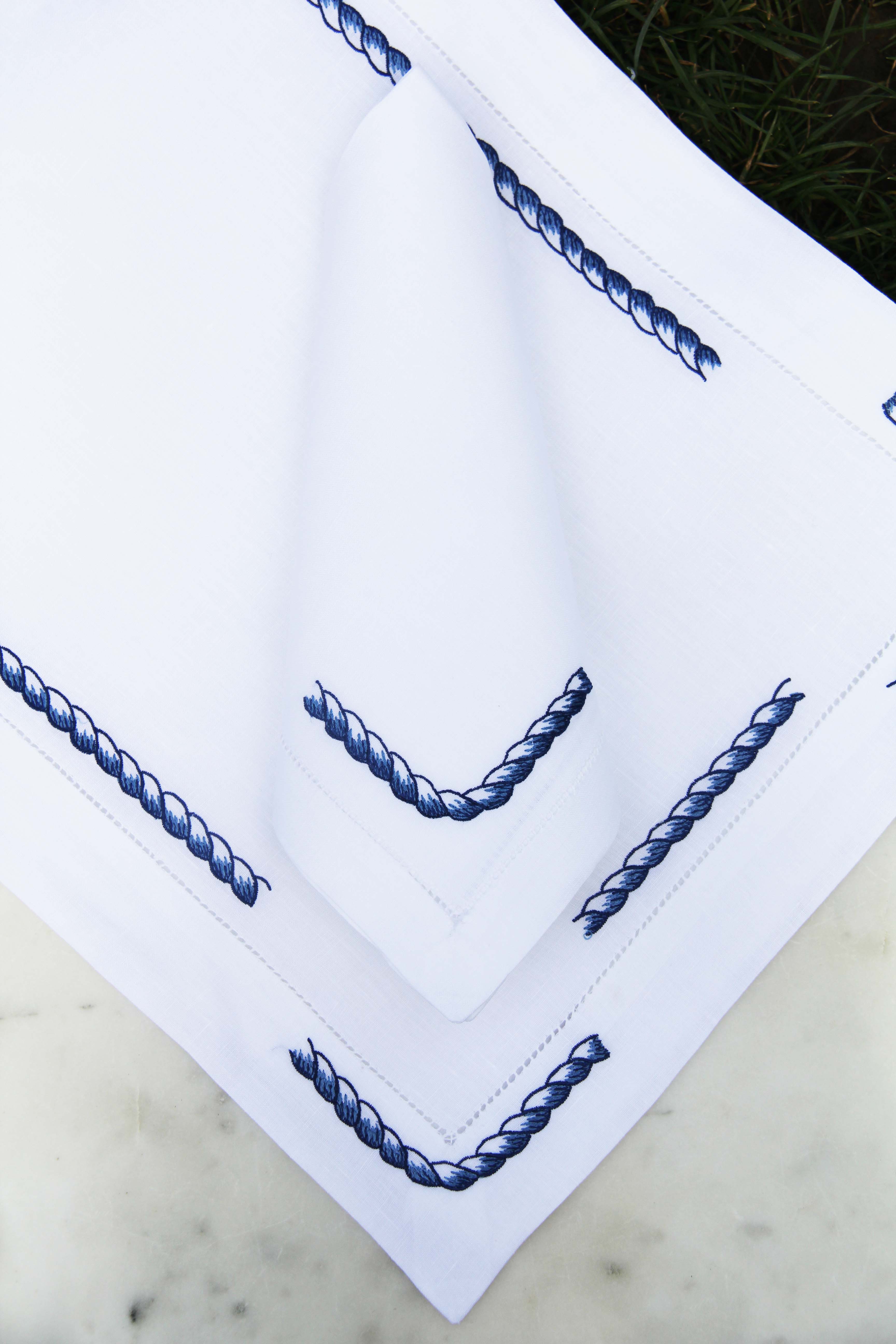 Saint-Tropez blue Embroidered Linen Placemat and Napkin