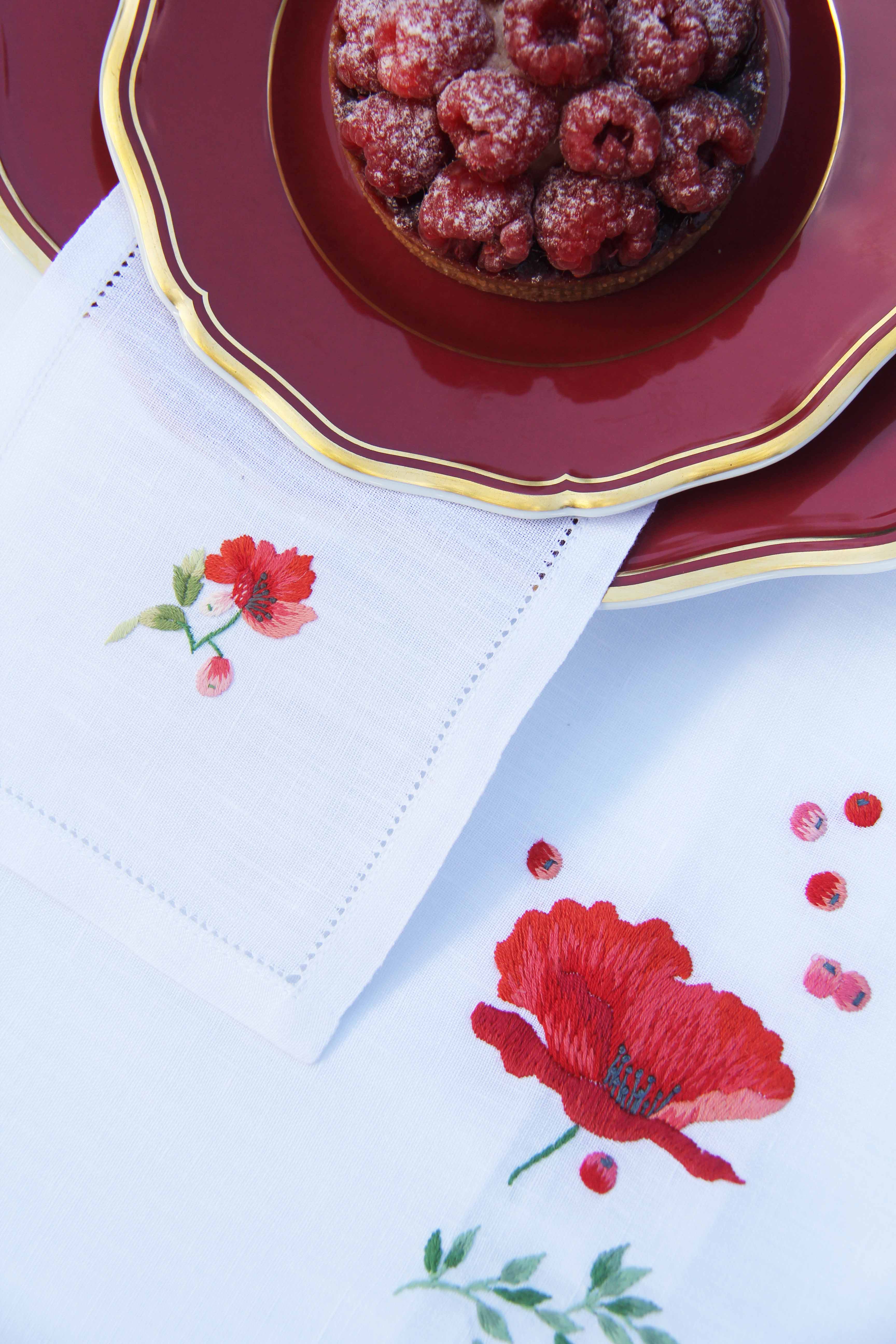 Woven in the finest materials and hand-embroidered in our French workshops, these elements reflect a desire: to reinvent table linen with nobility, rigor and poetry.