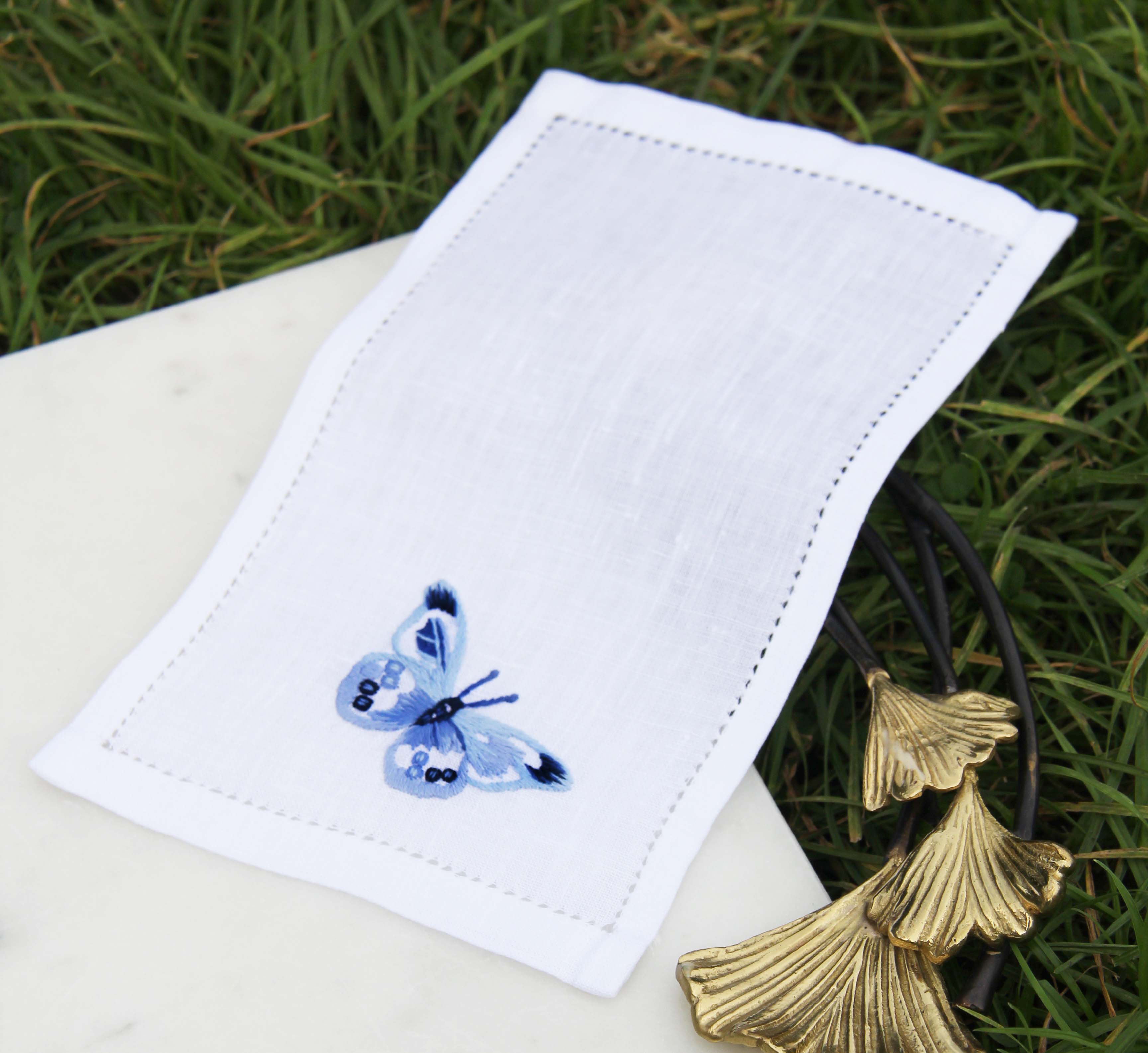 Coléoptère blue Embroidered Linen Cocktail Napkin