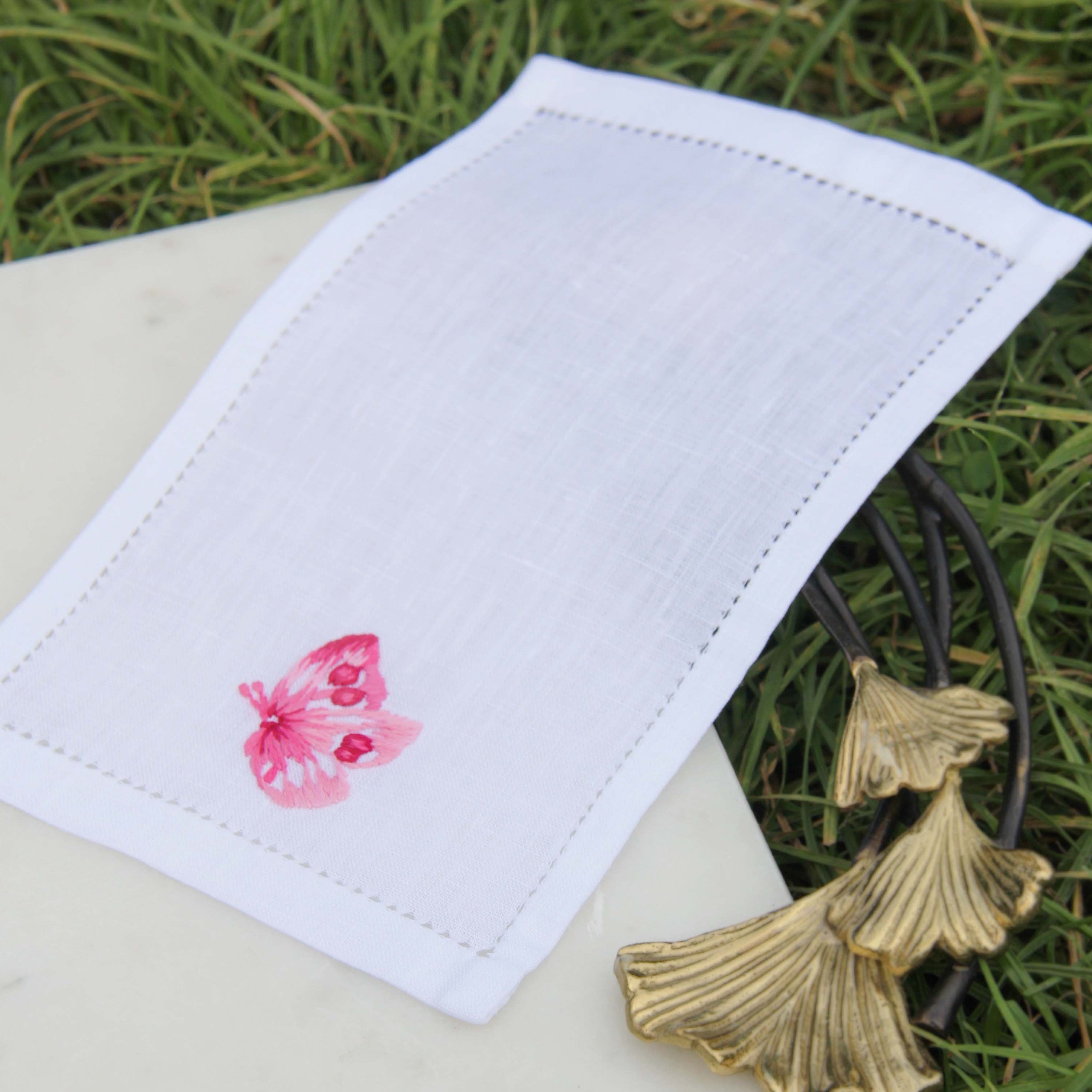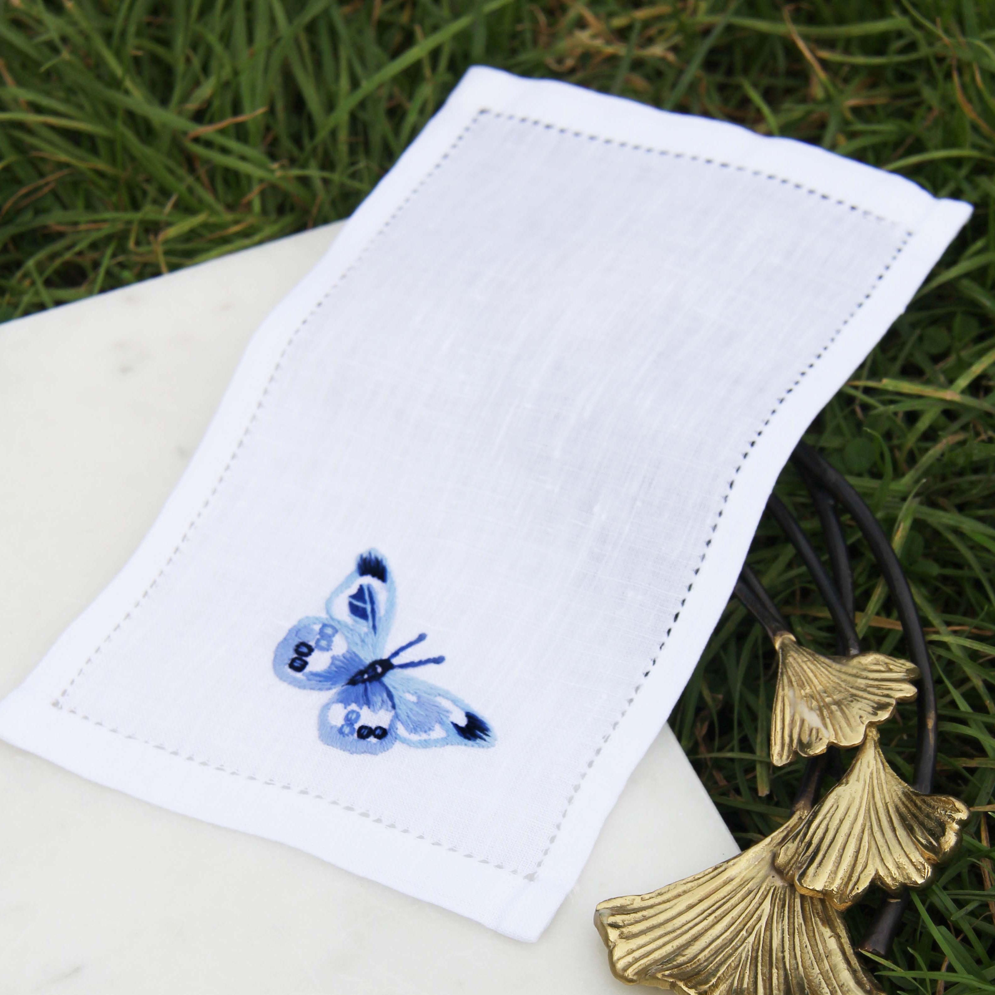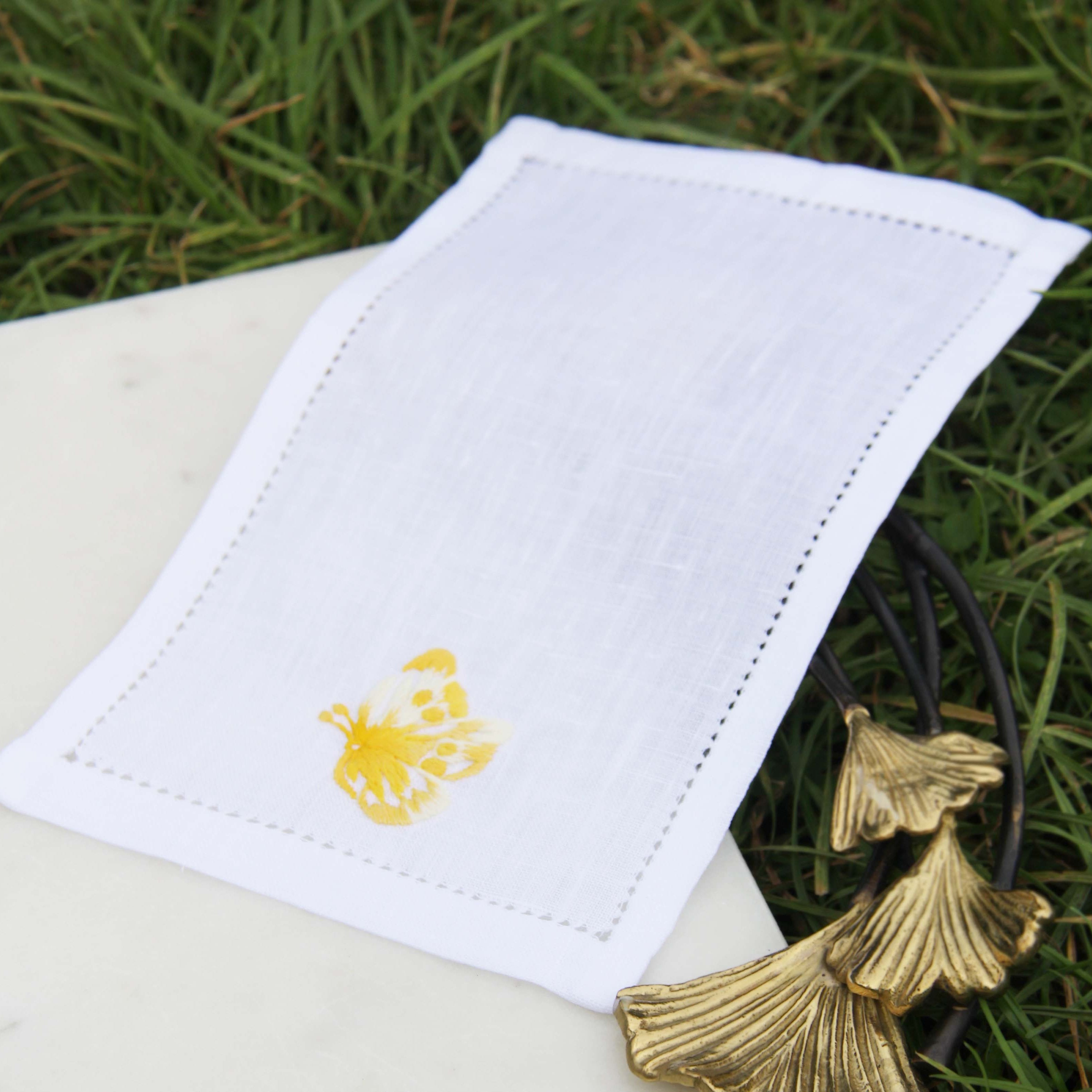 Coléoptère yellow Embroidered Linen Cocktail Napkin