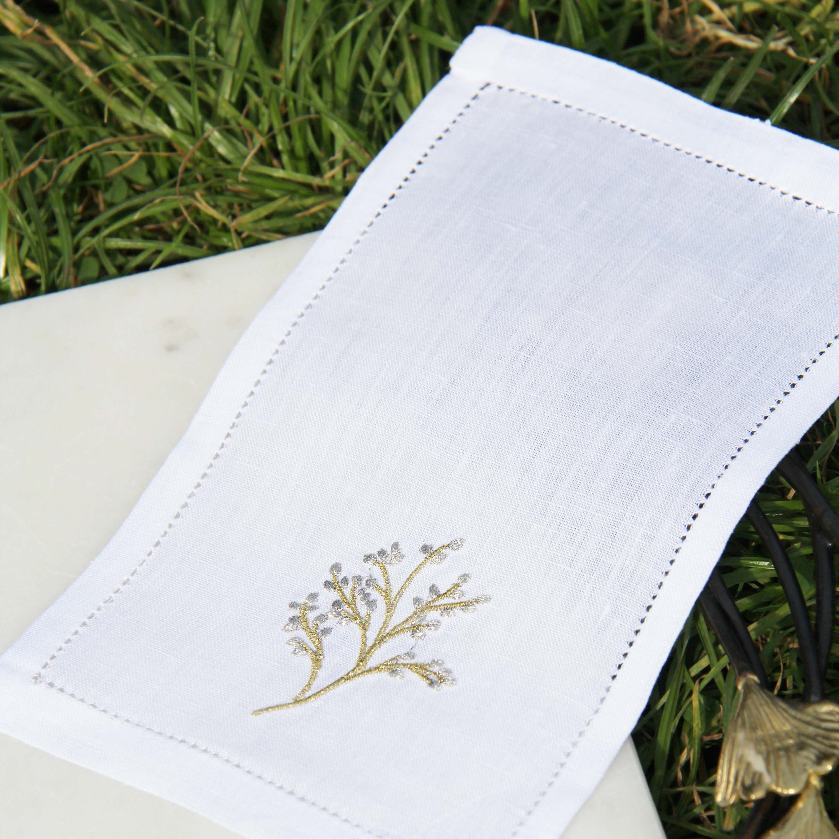 New Graminée gold and silver Embroidered Linen Cocktail Napkin