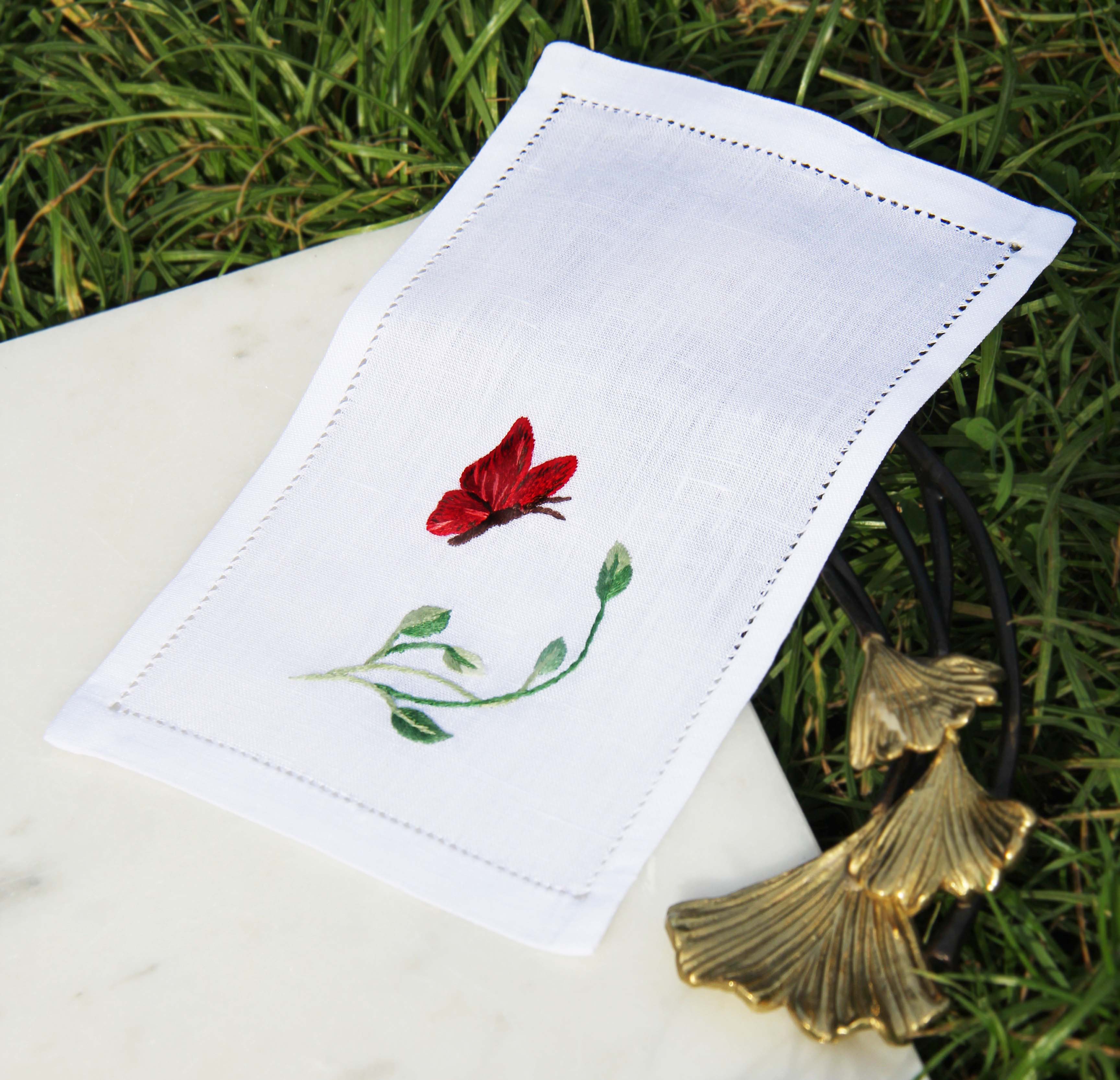 Spring morning embroidered linen cocktail napkin