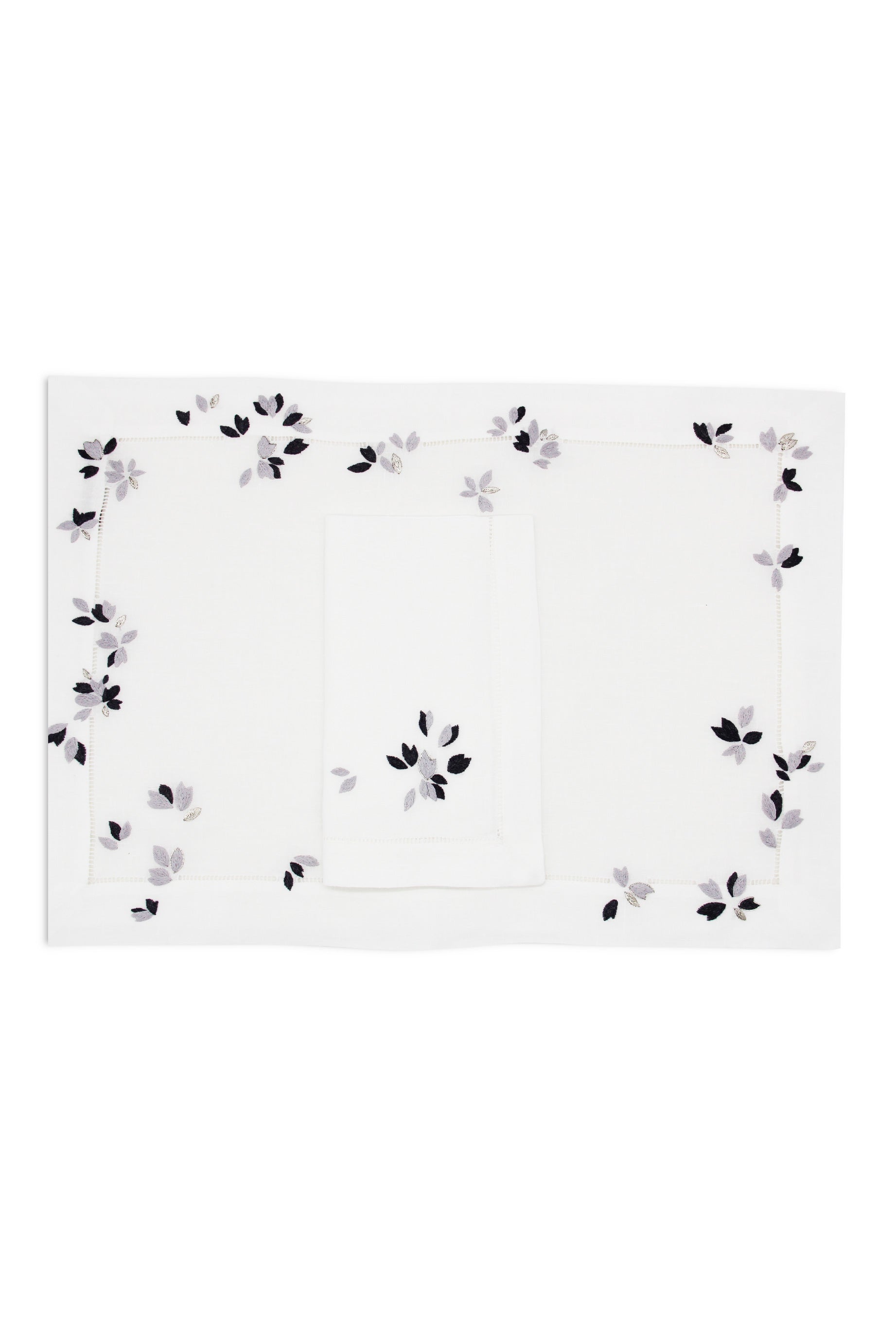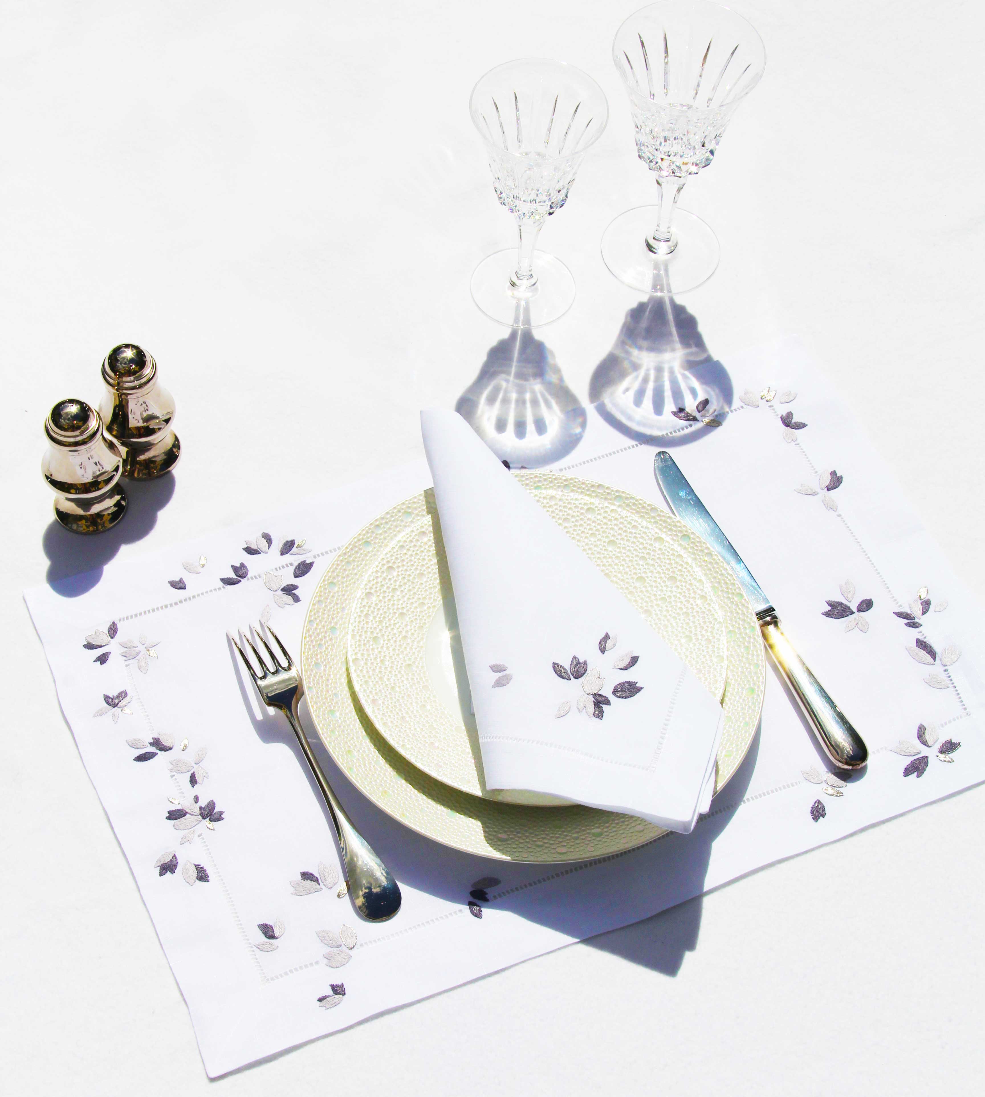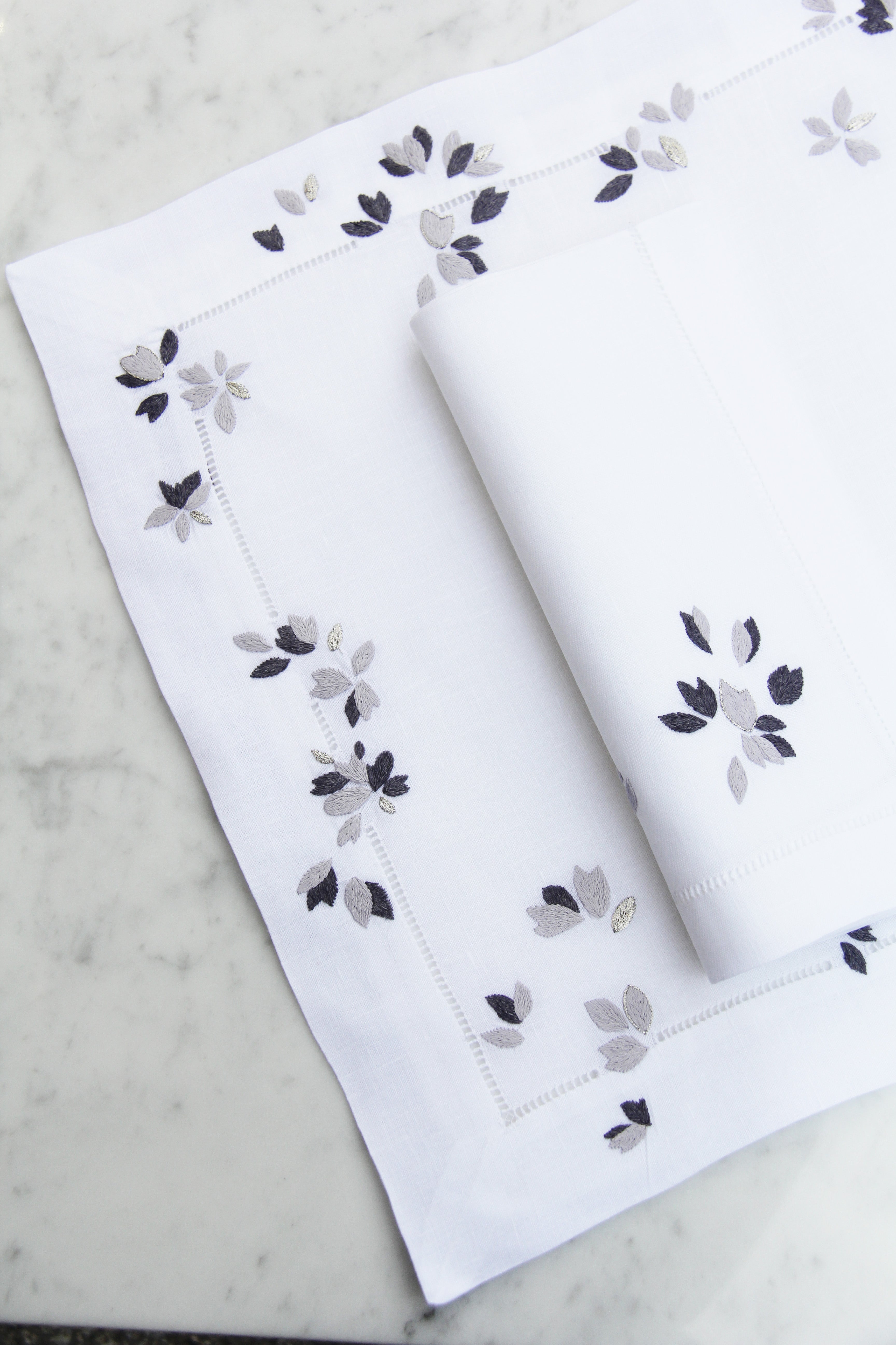 Jeté de pétales gray Embroidered Linen Placemat and Napkin