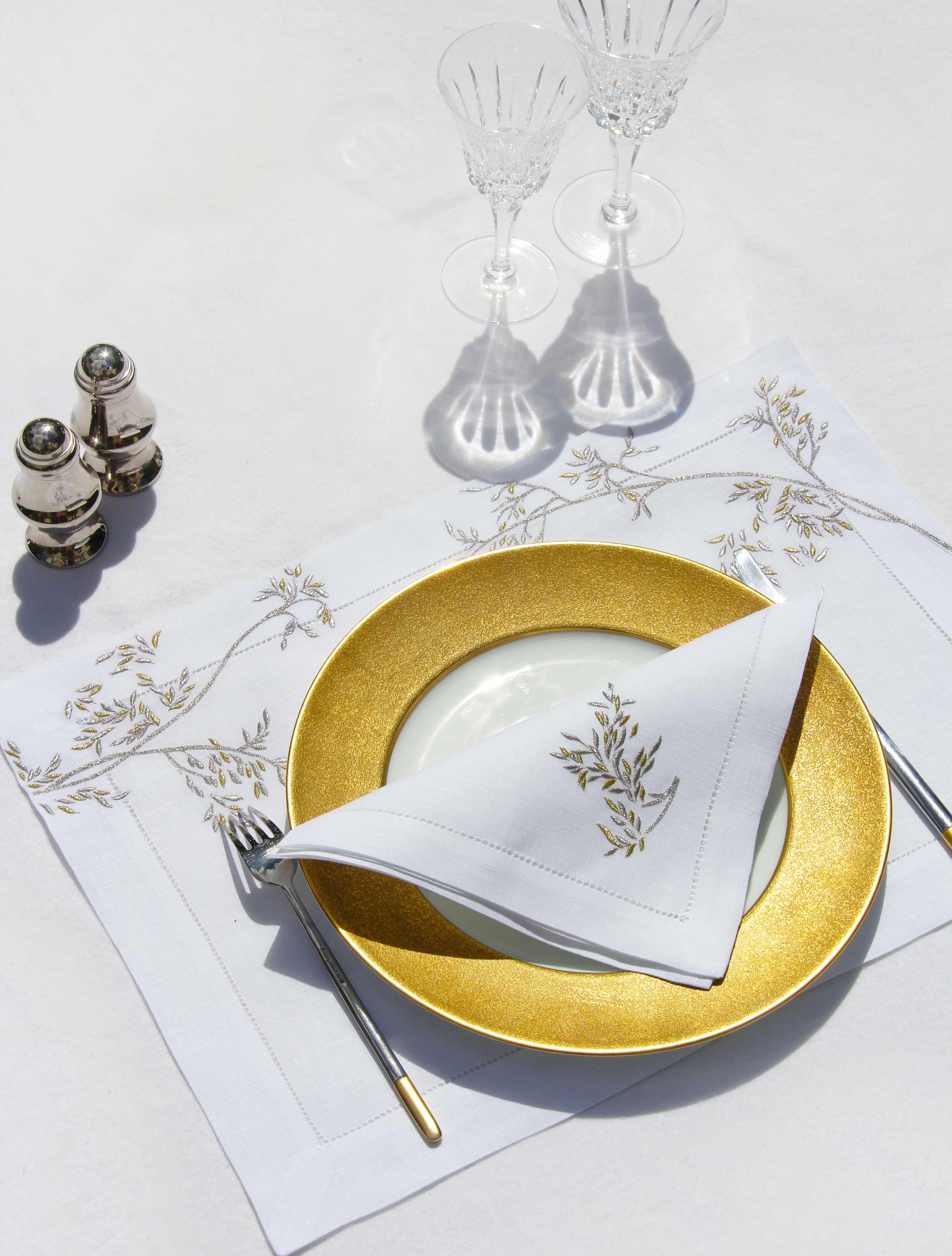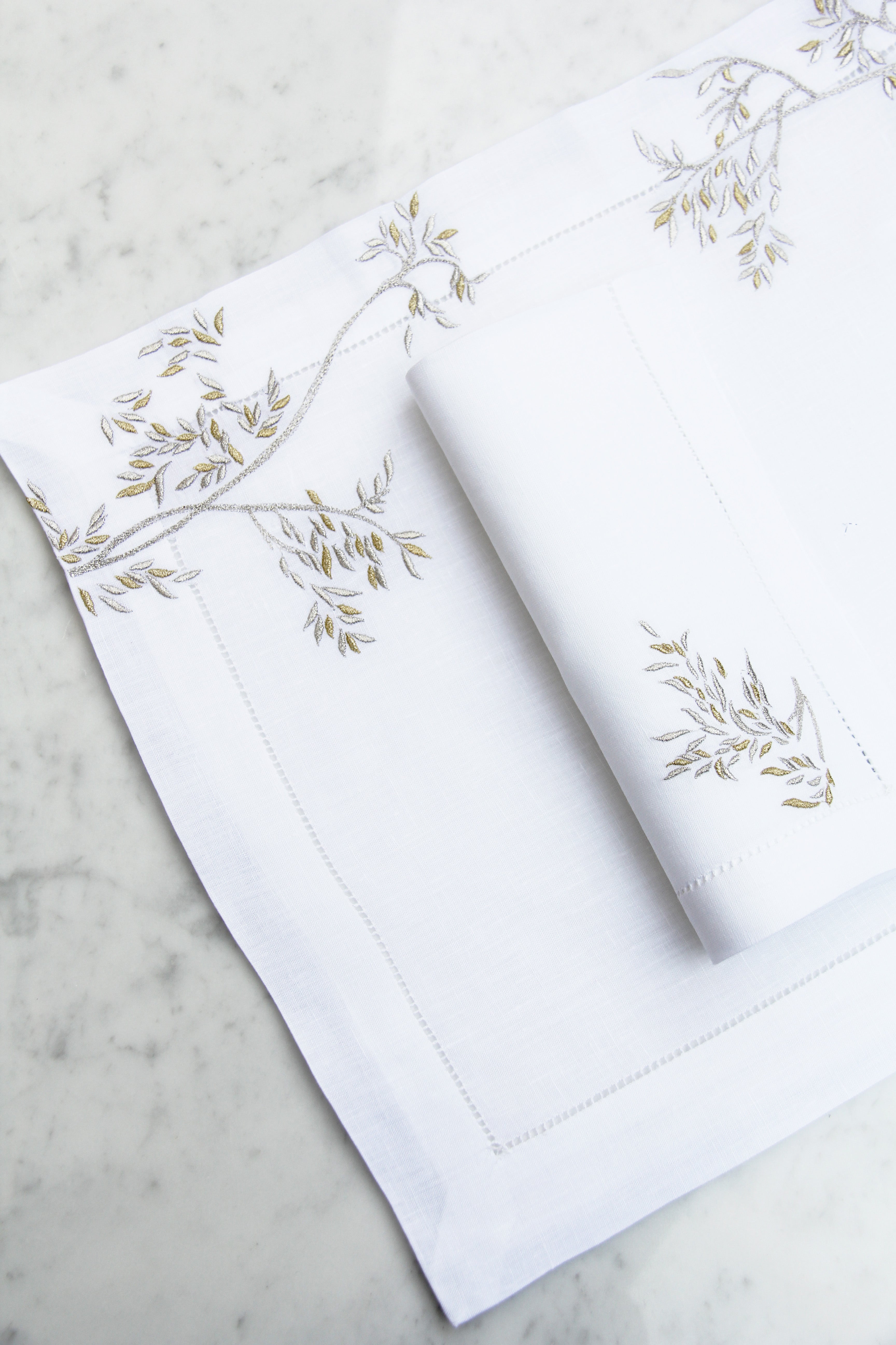 Nagoya gold and silver Embroidered Linen Placemat and Napkin