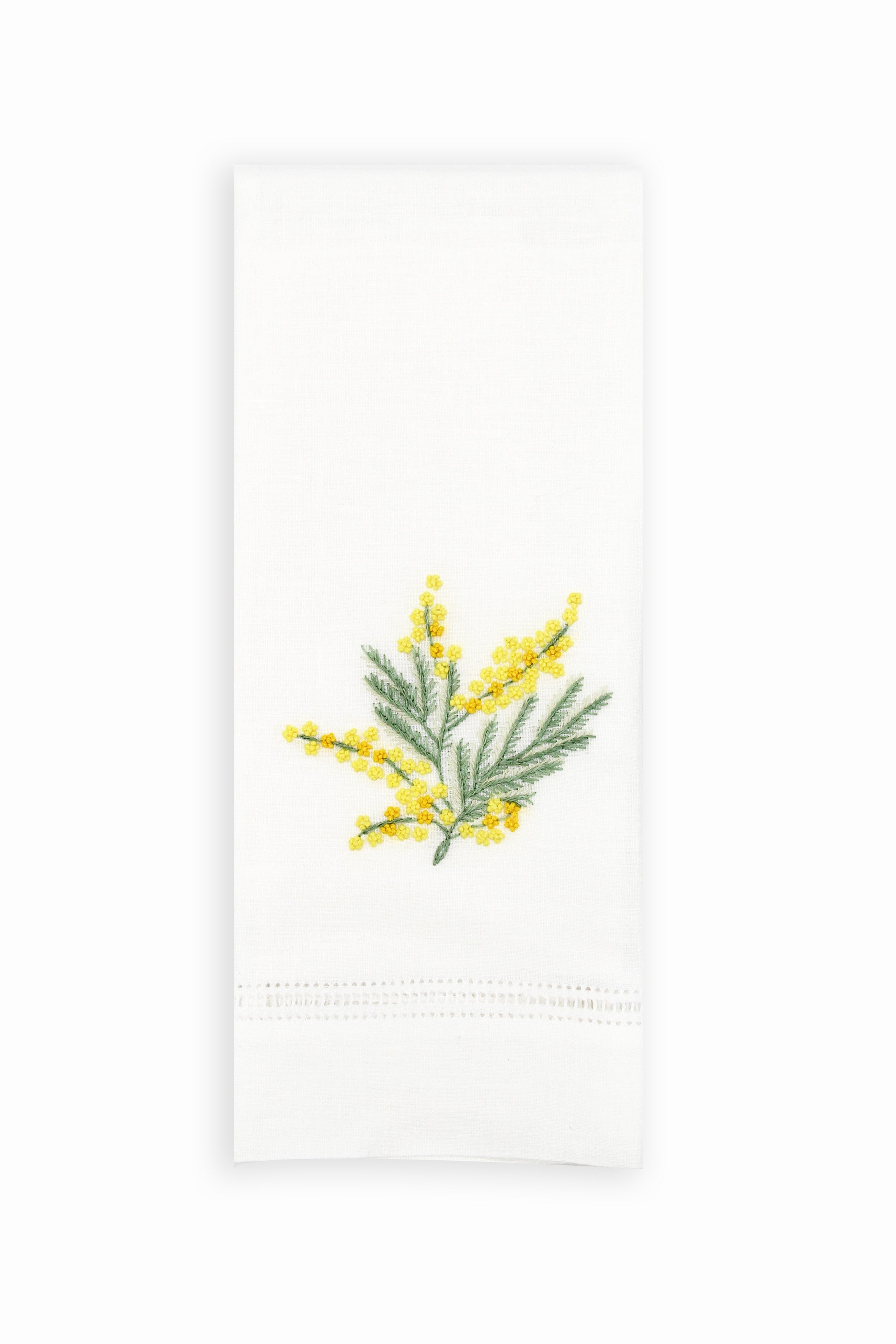 Mimosa embroidered linen guest towel