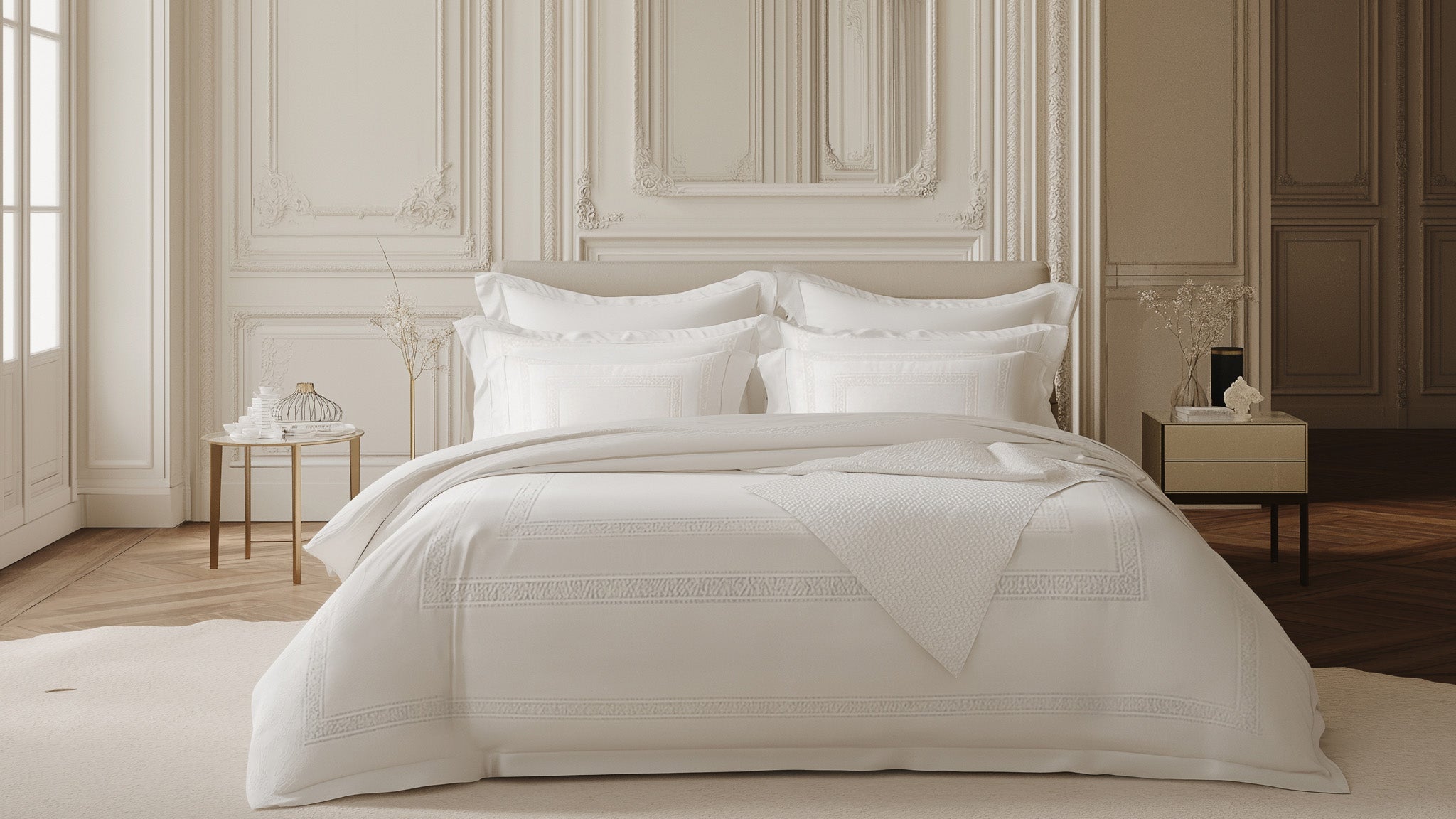 Nos nappes de luxe, serviettes de table brodées, draps de bain et sets de table design ne sont pas de simples accessoires : ce sont des pièces de caractère, pensées pour magnifier l’art de vivre à la française, que ce soit dans une maison privée ou dans les suites les plus prestigieuses.